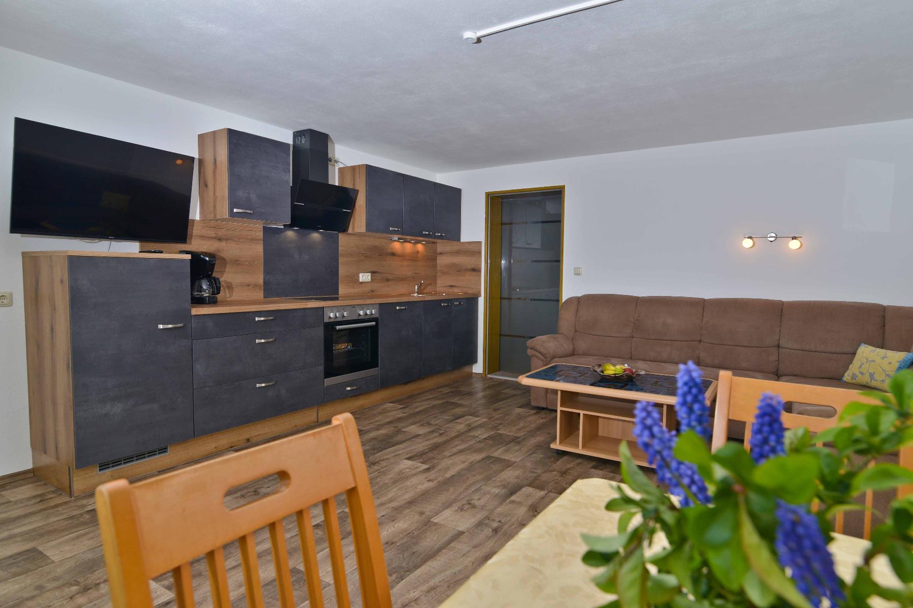 * ein freundlich eingerichteter Wohnraum mit Küche (Spülmaschine,