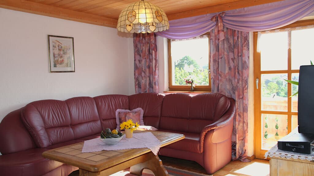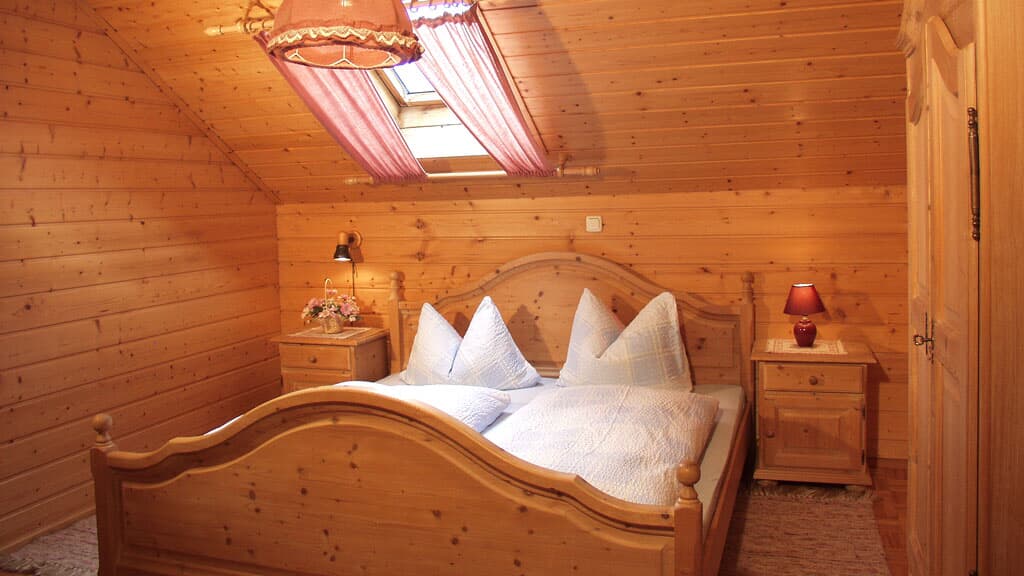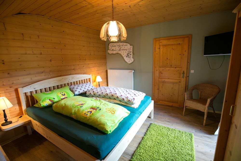 Die Ferienwohnung Osserberg (110qm) bietet Platz für 6 Personen. In den drei Schlafzimmern steht jeweils ein bequemes Doppelbett. In einem Schlafzimmer befindet sich ein großer TV. Das Wohnzimmer mit Sat-TV, großer Couch und Kachelofen lädt zum Verweilen ein. Die Küche mit Spülmaschine, Mikrowelle, Toaster, Wasserkocher, Espressomaschine lässt keine Wünsche offen. Das Bad besteht aus Badewanne und WC. Im zweiten Bad befindet sich noch eine Badewanne. Auf den schönen Balkonen können Sie die Sonne und Aussicht genießen. Babygerechte Ausstattung möglich. Frühstücksbuffet gegen Aufpreis möglich. Tischtennisraum mit großem Fußballkicker, große Liegewiese mit Liegen und Grill und ein separater Waschraum mit Waschmaschine und Trockner stehen unseren Gästen zur Verfügung. Kostenloses Reiten am Hof und auf Wunsch Kinderbetreuung. Separates Kinderspielzimmer, Aufenthaltsraum, eigener schattiger Kinderspielplatz mit Baumhaus, großem Trampolin und Lagerfeuerstelle.