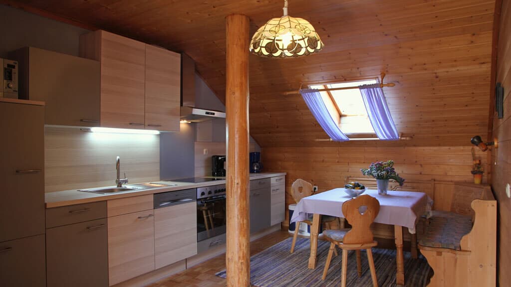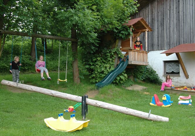 Einziger als Baby- und Kinderbauernhof ausgezeichneter Beherbergungsbetrieb im Luftkurort Arrach Ackerbau und Grünlandbetrieb: Unser voll bewirtschafteter Bio Hof liegt abseits von Straße und Lärm, waldnah, ca. 150 m vom Ort entfernt. Alle Wohnungen sind mit natürlichen Baustoffen und viel Liebe eingerichtet. Selber Traktorfahren macht unseren kleinen und großen Gästen Spaß. Unsere Stalltür steht offen, so dass Sie die Tiere im Stall oder auf der Weide füttern, oder einfach den ganzen Tag Bauer sein können Mit der Bäuerin das Frühstücksei abholen, einfach ein Kinderparadies! Separates Kinderspielzimmer, Aufenthaltsraum, eigener schattiger Kinderspielplatz mit Baumhaus, großem Trampolin und Lagerfeuerstelle. Tischtennisraum mit großem Fussballkicker, große Liegewiese mit Liegen und Grill und ein separater Waschraum mit Waschmaschine und Trockner stehen unseren Gästen zur Verfügung. Kostenloses Reiten am Hof, auf Wunsch Kinderbetreuung, großer Kinderfuhrpark und eigenes Wochenprogramm für unserer Gäste. Im Heu schlafen oder toben. Frühstücksbuffet gegen Aufpreis möglich! Ferienwohnungsausstattung jeweils mit Mikrowelle, Toaster, Wasserkocher, Espressomaschine, Spülmaschine, Parkettboden, Massivmöbel und Kaminöfen. Wann dürfen wir Sie bei uns willkommen heißen