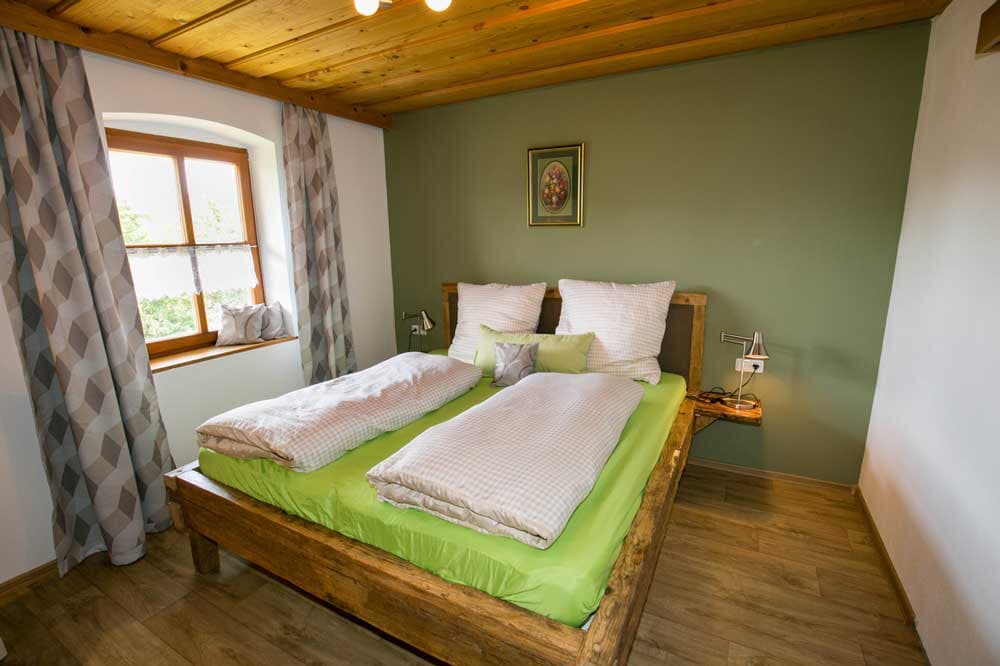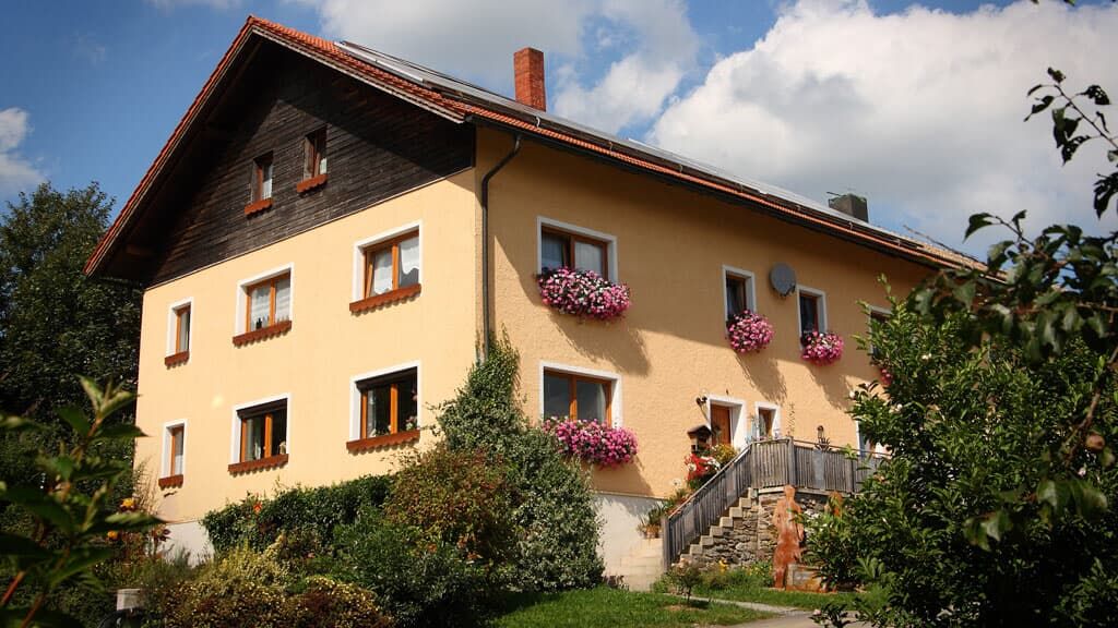 Einziger als Baby- und Kinderbauernhof ausgezeichneter Beherbergungsbetrieb im Luftkurort Arrach Ackerbau und Grünlandbetrieb: Unser voll bewirtschafteter Bio Hof liegt abseits von Straße und Lärm, waldnah, ca. 150 m vom Ort entfernt. Alle Wohnungen sind mit natürlichen Baustoffen und viel Liebe eingerichtet. Selber Traktorfahren macht unseren kleinen und großen Gästen Spaß. Unsere Stalltür steht offen, so dass Sie die Tiere im Stall oder auf der Weide füttern, oder einfach den ganzen Tag Bauer sein können Mit der Bäuerin das Frühstücksei abholen, einfach ein Kinderparadies! Separates Kinderspielzimmer, Aufenthaltsraum, eigener schattiger Kinderspielplatz mit Baumhaus, großem Trampolin und Lagerfeuerstelle. Tischtennisraum mit großem Fussballkicker, große Liegewiese mit Liegen und Grill und ein separater Waschraum mit Waschmaschine und Trockner stehen unseren Gästen zur Verfügung. Kostenloses Reiten am Hof, auf Wunsch Kinderbetreuung, großer Kinderfuhrpark und eigenes Wochenprogramm für unserer Gäste. Im Heu schlafen oder toben. Frühstücksbuffet gegen Aufpreis möglich! Ferienwohnungsausstattung jeweils mit Mikrowelle, Toaster, Wasserkocher, Espressomaschine, Spülmaschine, Parkettboden, Massivmöbel und Kaminöfen. Wann dürfen wir Sie bei uns willkommen heißen