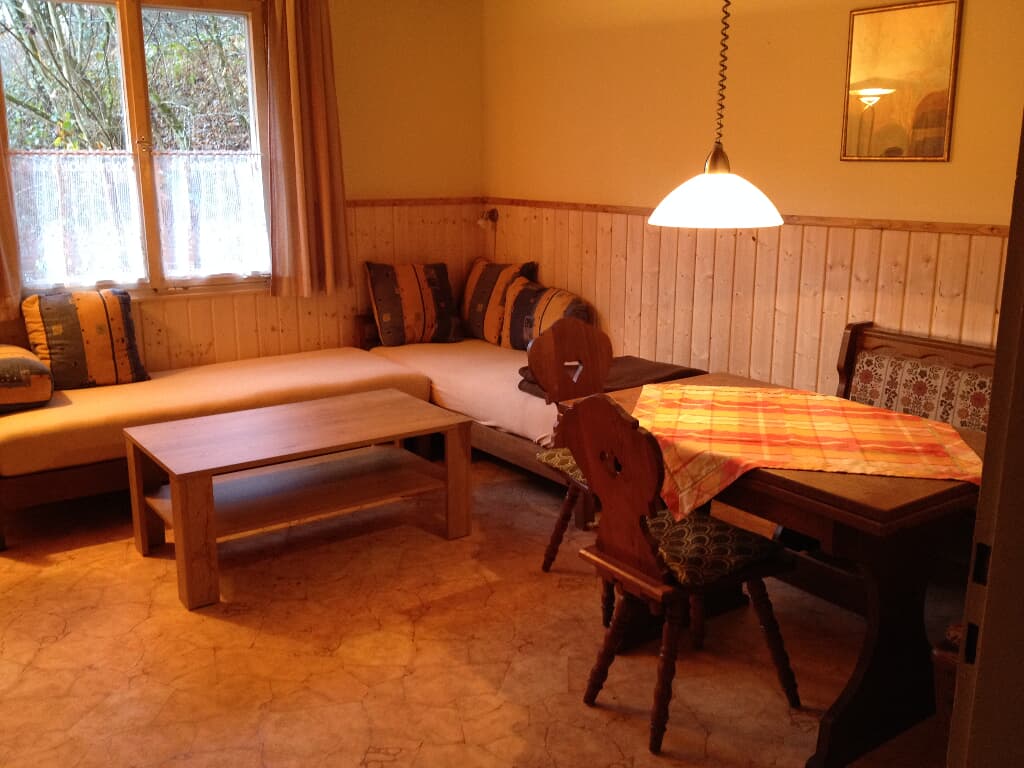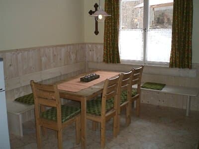 Im Ferienhaus Ilztal ist Platz für viele Freunde (100 m²): Drei Schlafräume mit insgesamt 12 Betten (Zustellbetten sind möglich), gemütliches Wohnzimmer mit Essecke, Couch (Schlafmöglichkeit), große Wohnküche mit Kaminofen und Essecke, Bad mit Dusche und WC, Abstellkammer. Im Winter wird mit Holz geheizt.