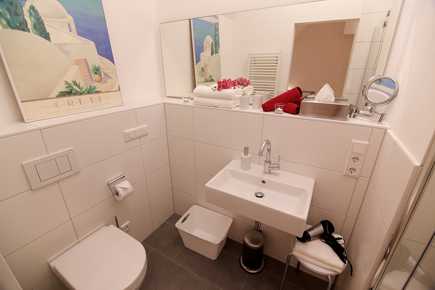 Hauseigene Tiefgarage ist über den Lift erreichbar ( 8,00 € pro Tag- vor Ort zu bezahlen), zwei Leih-Fahrräder kostenfrei, abschließbarer Fahrradraum, Kinderermäßigung, für Kleinkinder wegen der offenen Treppe nur bedingt geeignet. Haustiere sind leider nicht erlaubt, nur für Nichtraucher.