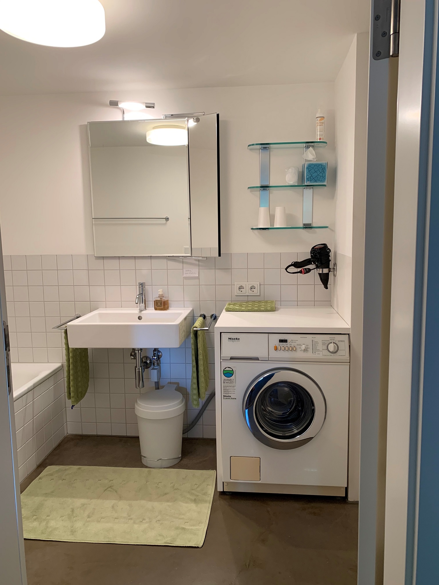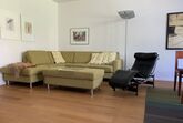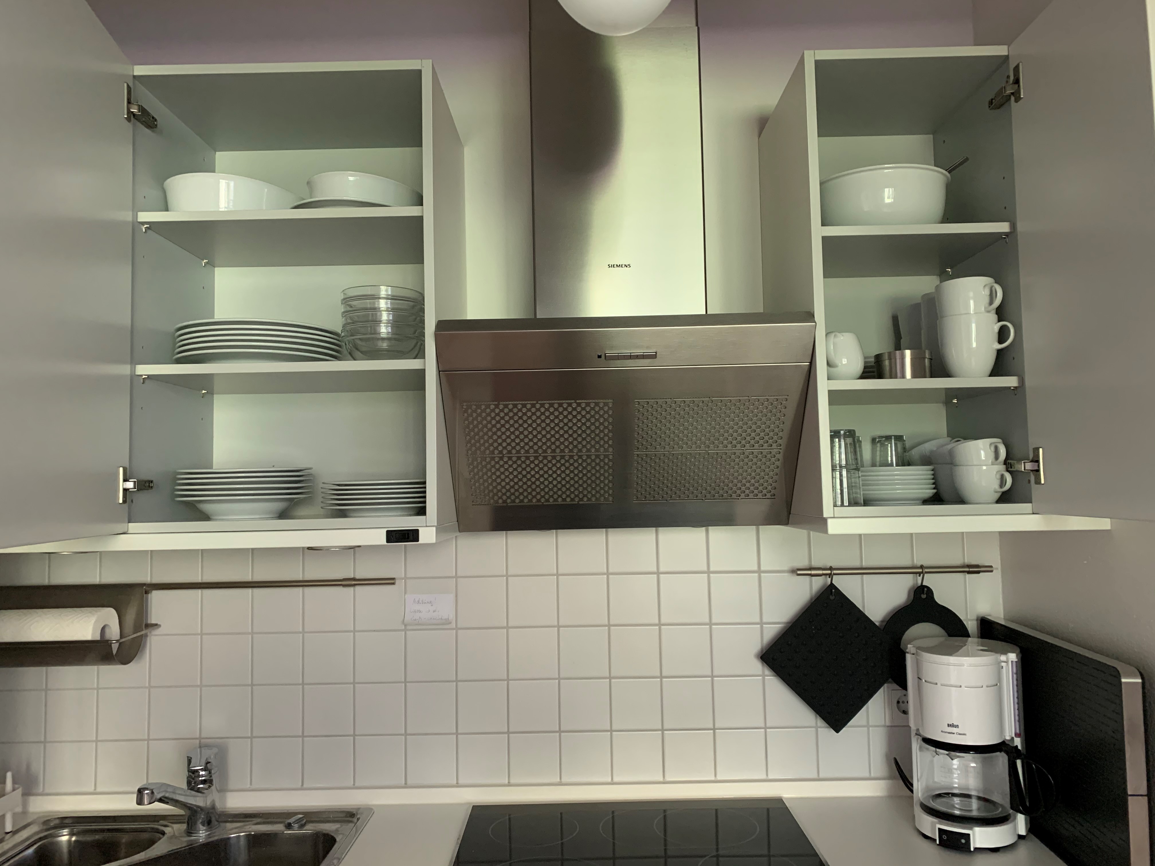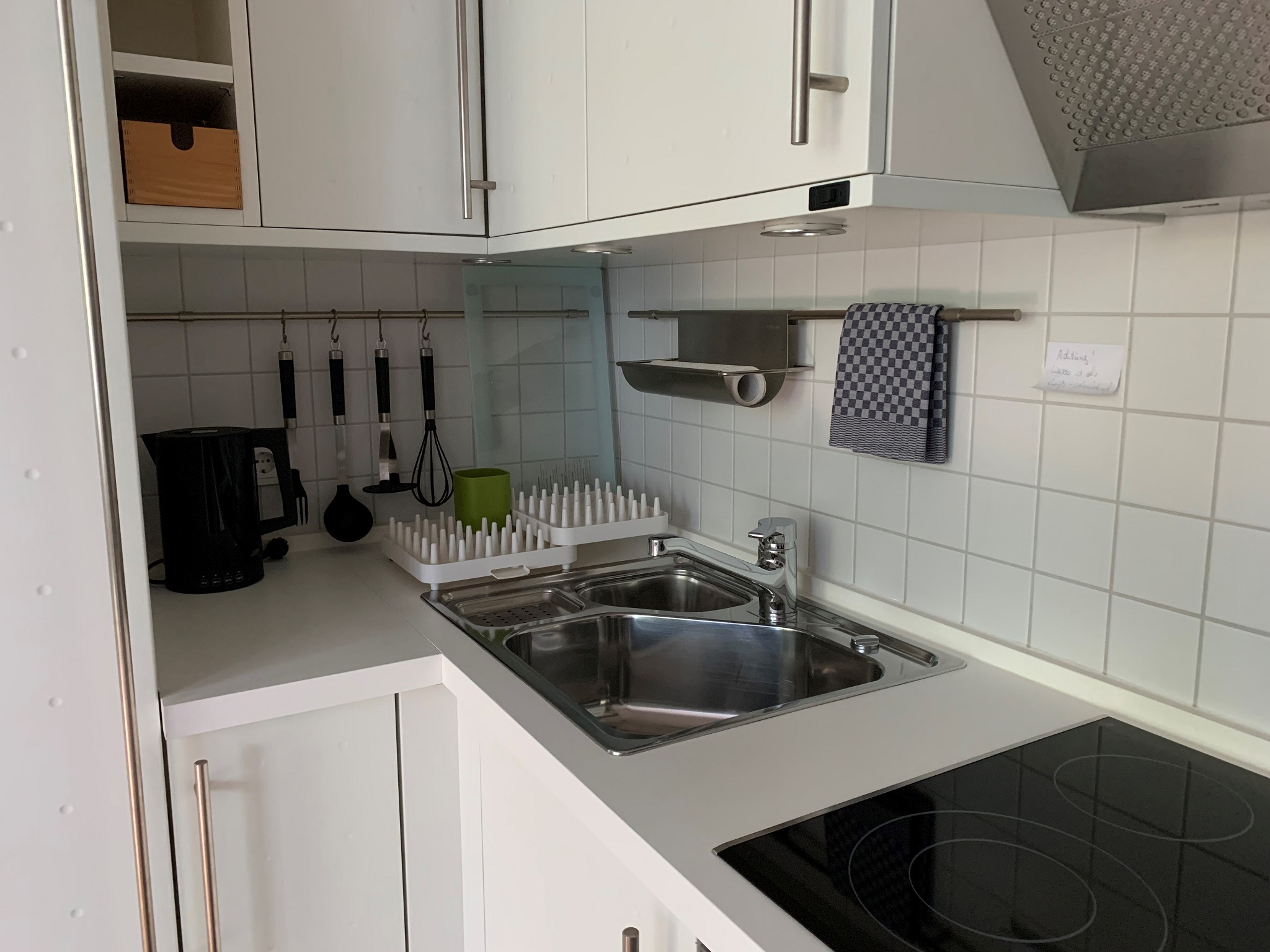 Im Wohn-Esszimmer finden Sie einen großen Essplatz für 6 und mehr Personen, ein (Schlaf-)Sofa mit einer Liegefläche von 140 bzw. 200 cm x 200 cm für den dritten und vierten Gast, einen Full-HD 100 Flachbildschirm-TV, ein Radio, CD-Player mit i-Pod-/MP3 und USB-Anschluss sowie einen kleinen Schreibplatz. In der, zum Wohnraum offenen Küchennische finden Sie einen geräumigen Kühlschrank, ein großes Ceran-Kochfeld, einen Backofen mit allen Heizungsarten, Kaffeemaschine, Milchschäumer, Wasserkocher, French Press, Teekannen, Toaster, Eierkocher, weißes Porzellan, komplettes Küchenzubehör und übliche Haushaltsutensilien. Im separatem Schlafzimmer stehen ein Doppelbett mit einer Liegefläche von 180cm x 200cm, 2 Einzel-Federkernmatratzen und 2 Kleiderschränke. Das Bad verfügt über eine Badewanne, Dusche, WC, Waschmaschine, Fön, (Wäschetrockner kann genutzt werden). In der Diele finden Sie einen Einbauschrank zur Aufbewahrung der Betten oder Kleidung bei Nutzung der Schlafcoach, einen Schuhschrank und einen großen Wandspiegel. Ein Abstellraum für Gepäck steht Ihnen ebenfalls zur Verfügung. In der ebenerdigen Wohnung führen drei Stufen zum Wohn-Esszimmer. Die Wohnung besitzt einen separaten Eingang. Vor dem Eingang befindet sich der Freisitz mit Gartenmöbeln umgeben von alten Bäumen im grünen Garten. Auf Wunsch stehen ein Kinder-Reisebett und ein Tripp-Trapp-Stuhl kostenlos bereit. Parkmöglichkeiten finden Sie auf der Straße vor dem Haus (Sackgasse), Fahrräder können in einer abgeschlossenen Garage abgestellt werden. Haustiere sind leider nicht erlaubt. Ein kostenloser Internetzugang und W-Lan stehen Ihnen ebenfalls zur Verfügung.