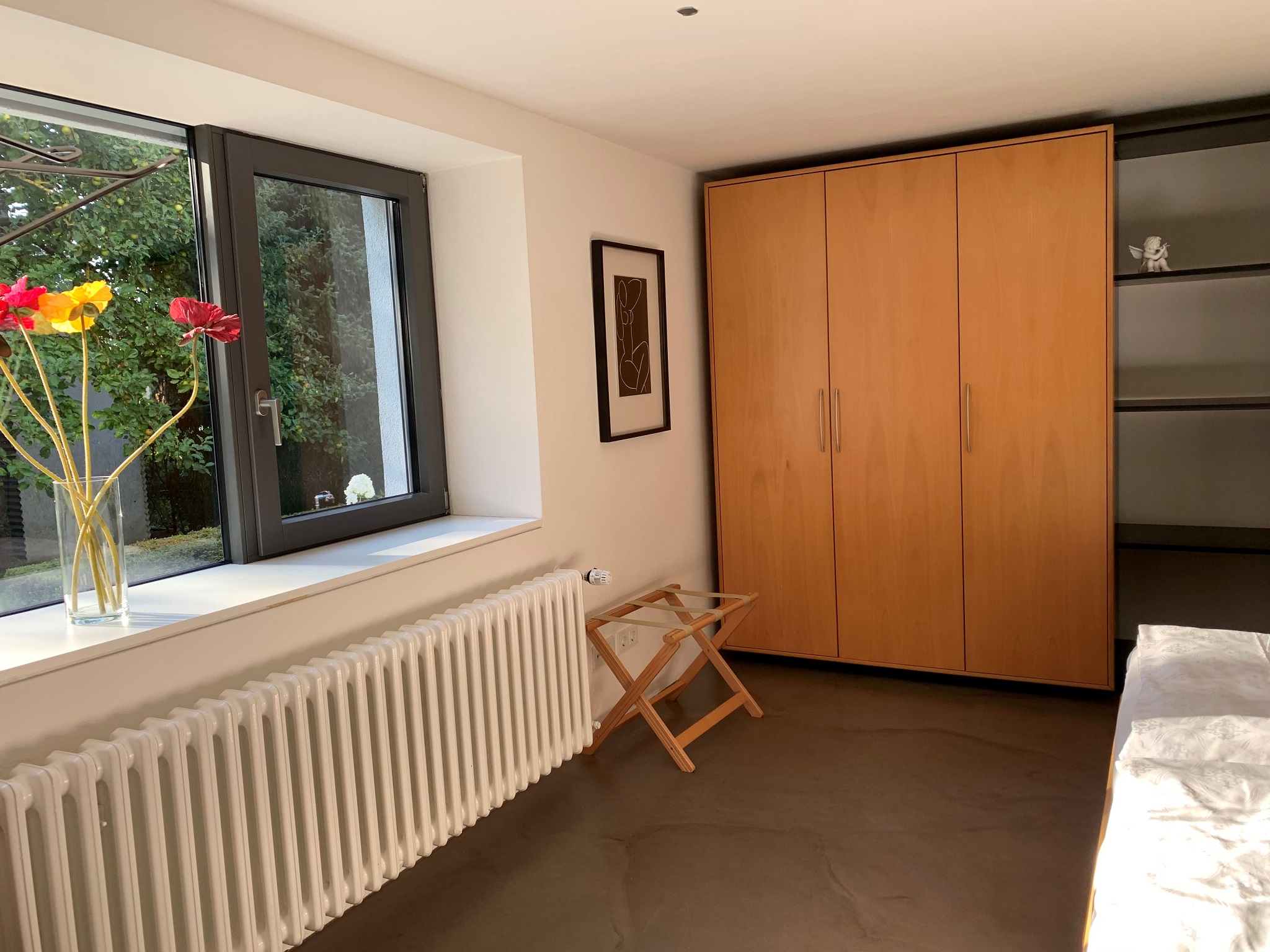 Nachdem das Haus aufwändig saniert wurde, bieten wir seit Sommer 2009 eine hochwertig ausgestattete, fortlaufend renovierte 2-Zimmer-Ferienwohnung (68 m²) für 1 bis 4 Personen an. Die großen, zur Gartenseite gerichteten Fenster sorgen für viel Helligkeit und gewähren einen Blick ins Grüne. Die Nichtraucher-Wohnung ist für Allergiker geeignet.