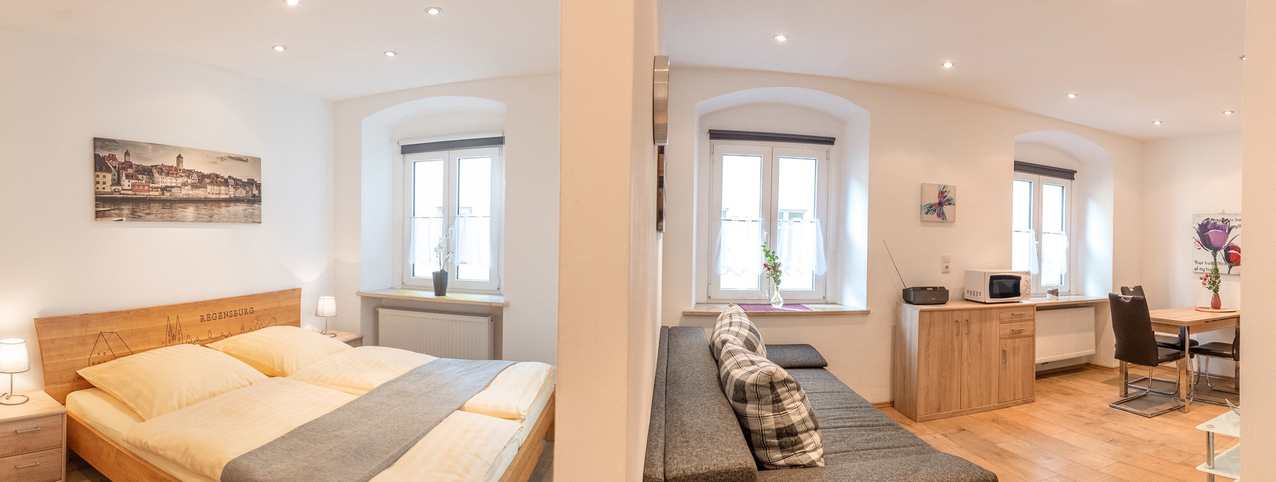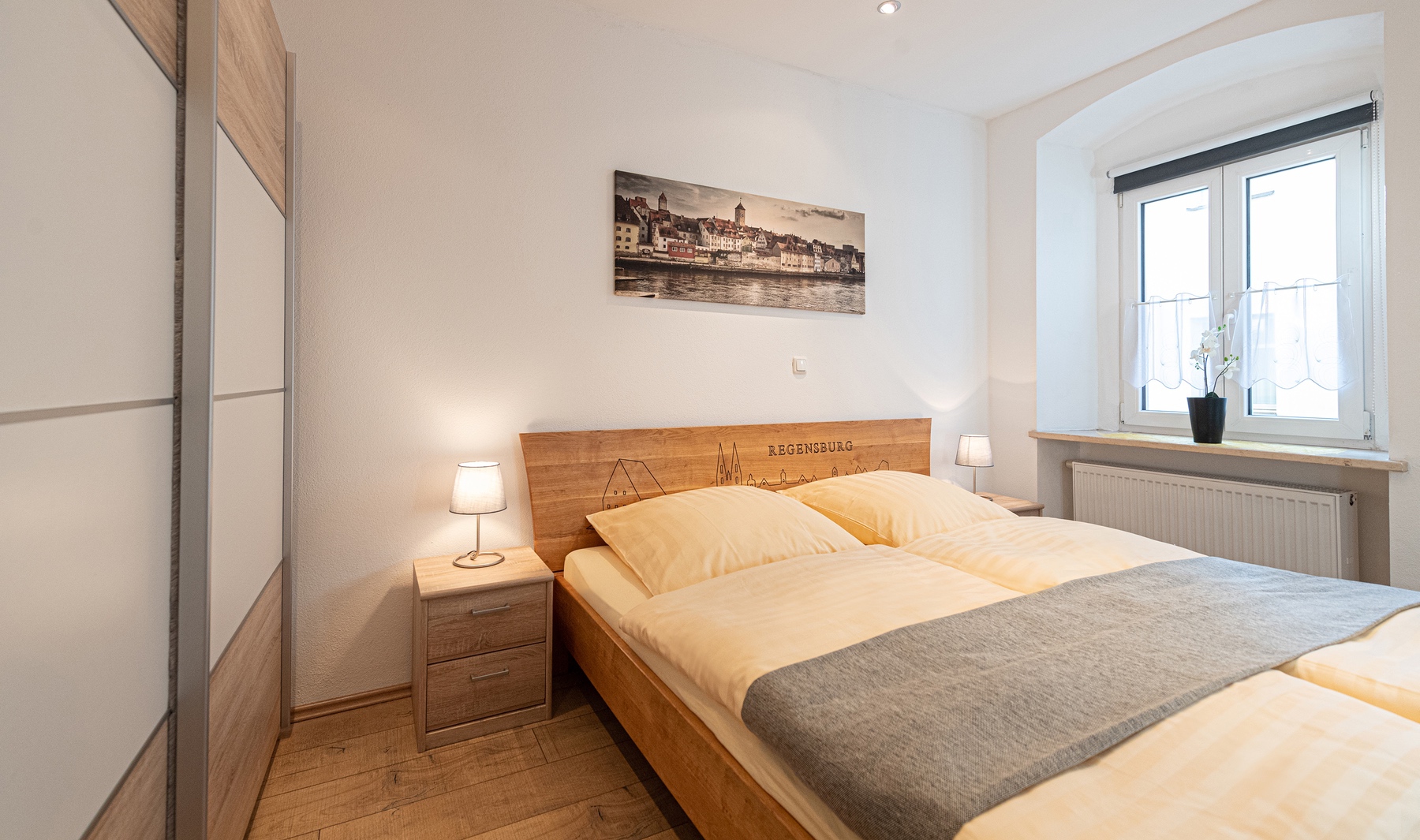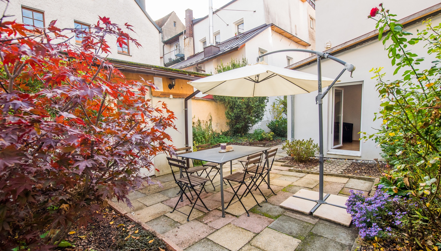Unser hochwertig saniertes kleines Altstadthaus (Fertigstellung September 2013) befindet sich mitten im Zentrum von Regensburg: 2 Minuten zum Fürstlichen Schloss, 5 Minuten zum Neupfarrplatz, 10 Minuten zum Dom. Sehr ruhige Lage.