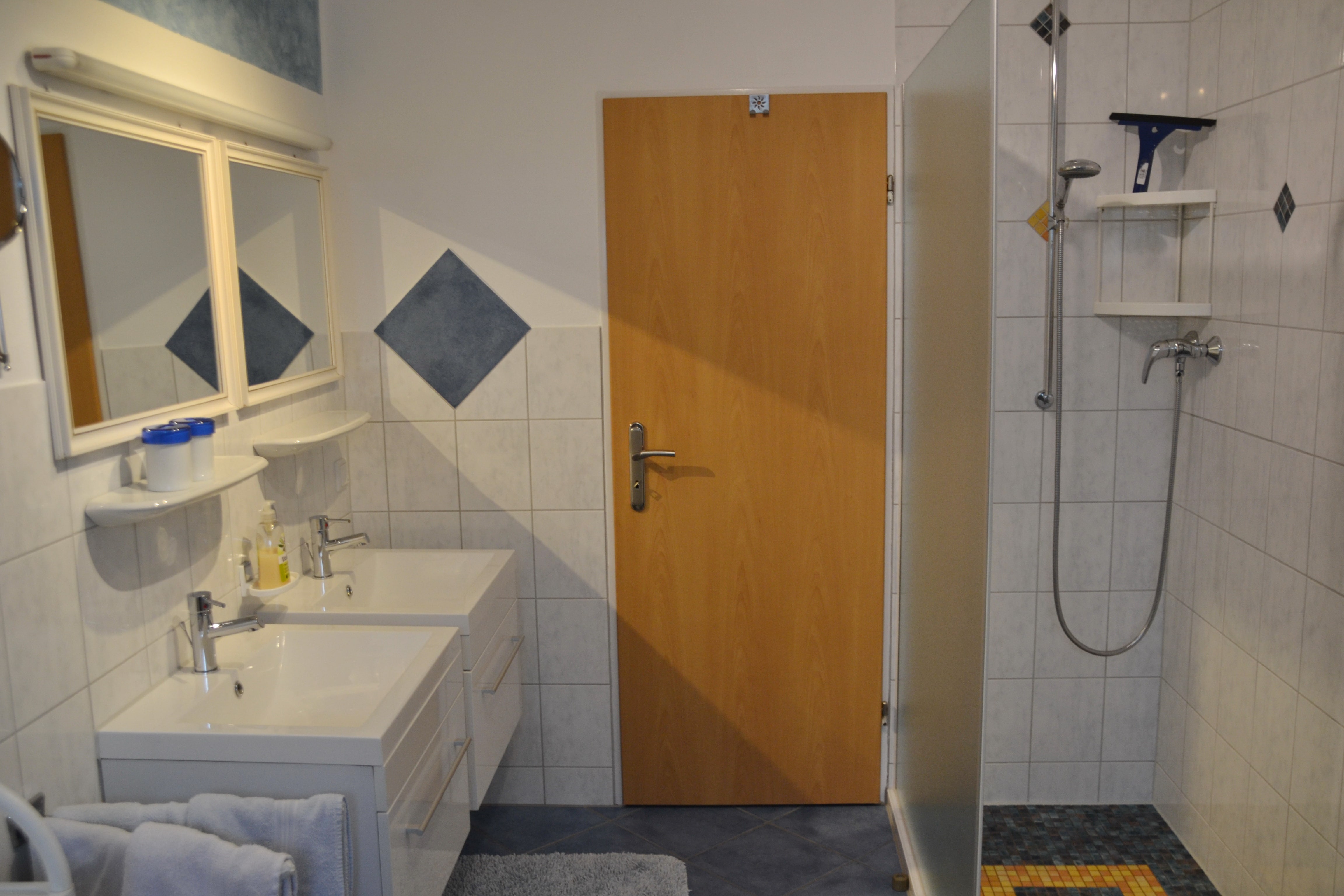 Ihre Komfort-Ferienwohnung mit 95m² Wohnfläche liegt in einer ruhigen Waldrandlage mit separatem Eingang. Es stehen Ihnen 2 große Schlafräume mit Doppelbetten zur Verfügung. Bei Bedarf können zusätzlich mobile Betten in der Wohnung aufgestellt werden. Im großen Wohnzimmer mit LCD TV können Sie mit unserem Schwedenofen Ihre persönliche Wohlfühlatmosphäre schaffen. Die Küche ist komplett ausgestattet inklusive Spülmaschine. Das Bad mit großer Dusche hat zudem 2 Waschbecken und Handtücher stehen auch zur Verfügung. Das WC ist separat. Ein kostenloser WLAN-Anschluß ist ebenfalls vorhanden.