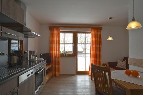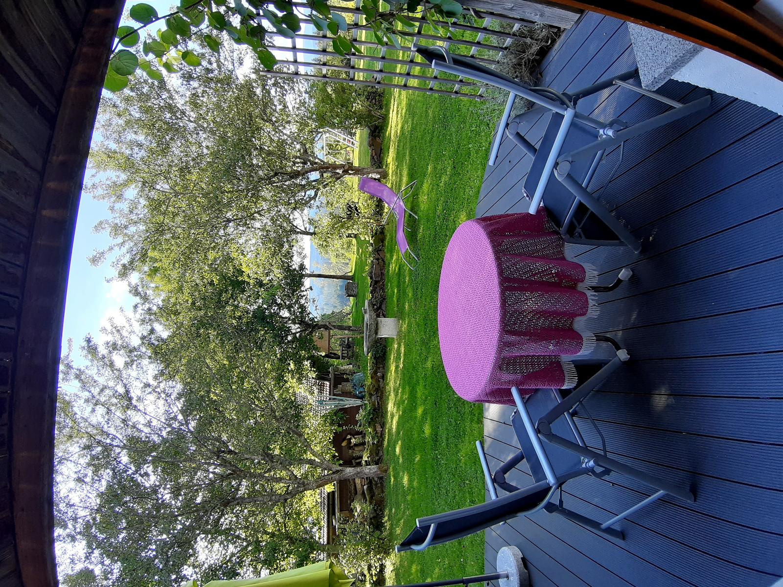 Unsere Ferienwohnungen Nr. 1 für 2 Personen verfügt über ein Schlafzimmer mit Doppelbett, Wohnküche mit Küchenzeile, Esstisch und Sofa, Bad mit Dusche und WC und eine große Diele, eine eigene Terrasse mit Gartenmöbeln und Zugang zum Garten und mit traumhaftem Blick über die Berge des Nationalparks, mit unserem Hausberg den Rachel - der höchste Berg des Nationalparks.