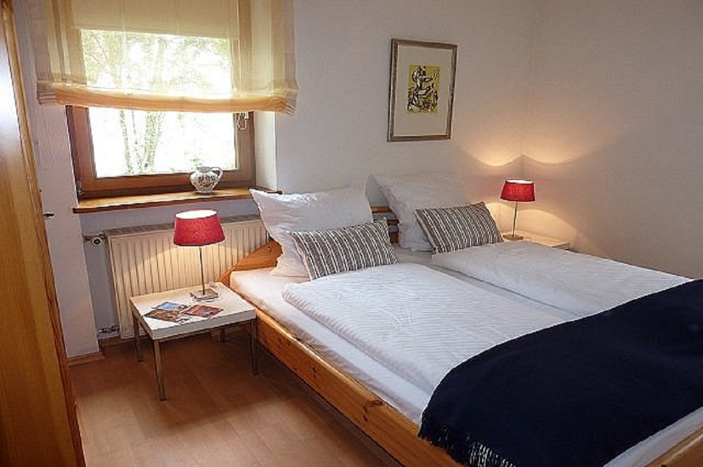 1 Schlafzimmer mit einem Doppelbett (2 Matratzen-je 90x200), 2 Comfort- Bettdecken (155x220)