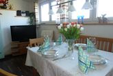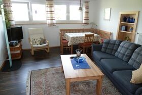 Backofen und Cerankochfeld, Kühl/Gefrierkombination, Mikrowelle etc. ausgestattet. Zur FeWo gehört ein Schlafzimmer mit Doppelbett, Wohn- Schlafraum mit Doppelbett und ein großzügiges Badezimmer mit Badewanne, Dusche und WC.