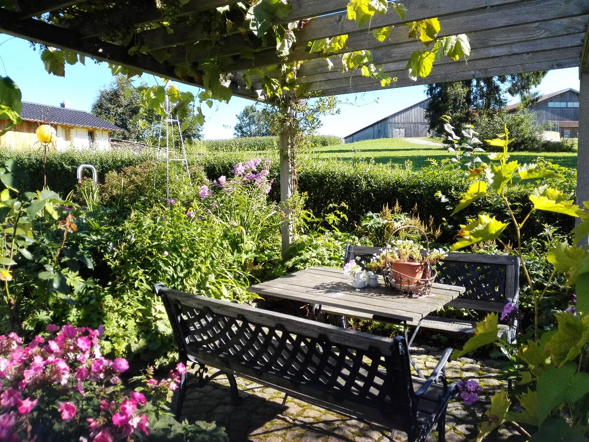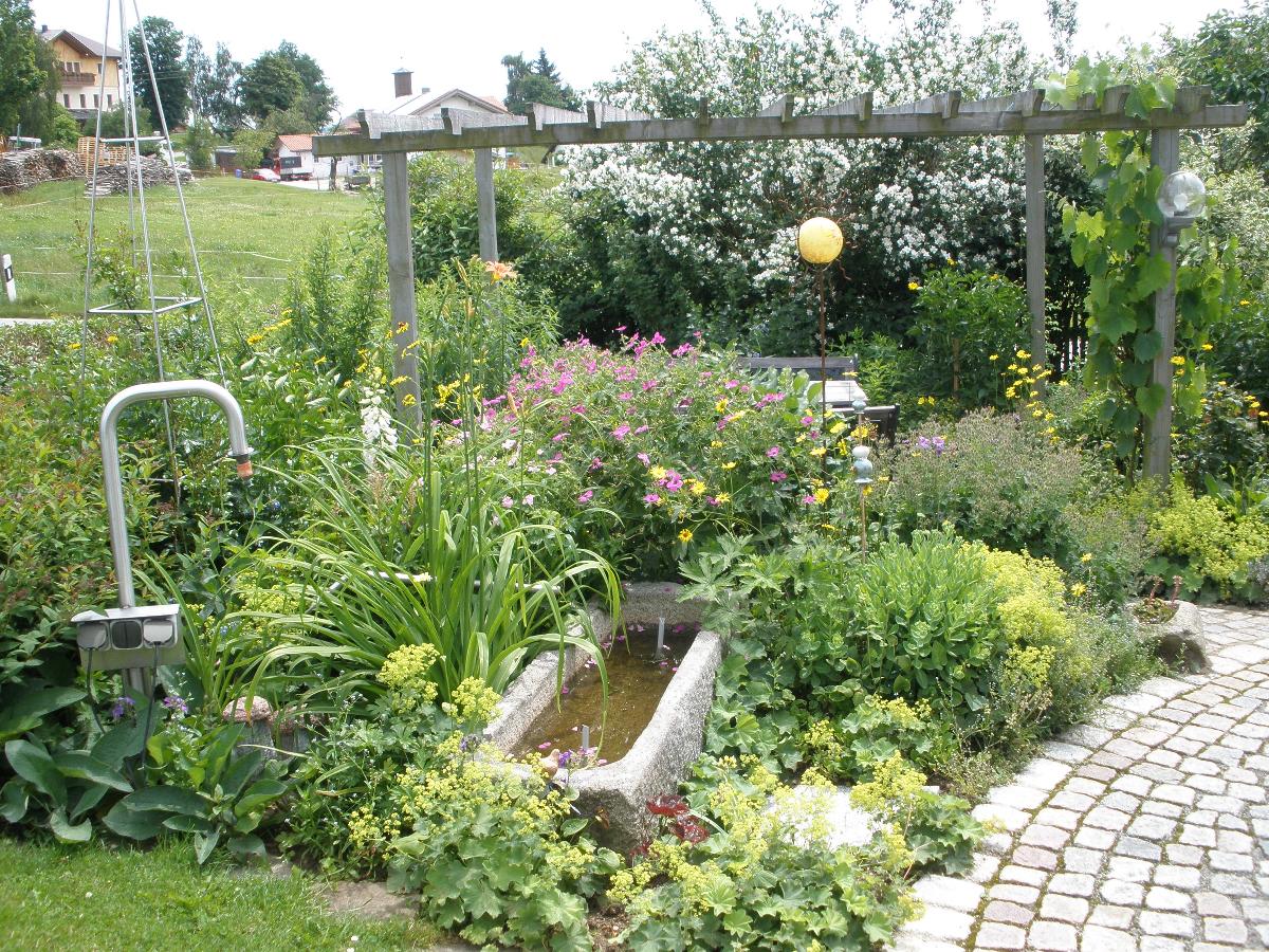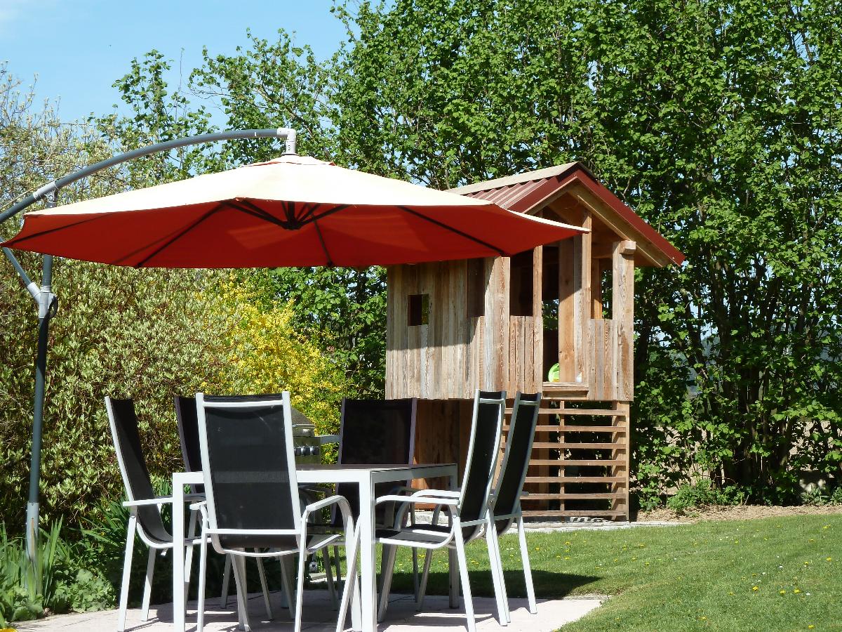 Im schön angelegten Garten gibt es mehrere Sitzgelegenheiten unter der Pergola und am Gartenteich. Ein Gasgrill steht zur Verfügung. Auf die Kinder wartet ein Gartenspielhäuschen mit Sandkasten und eine Tischtennisplatte.