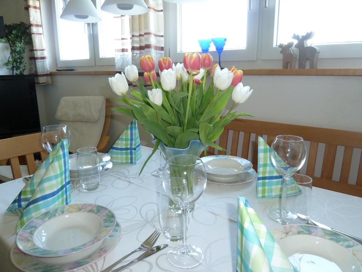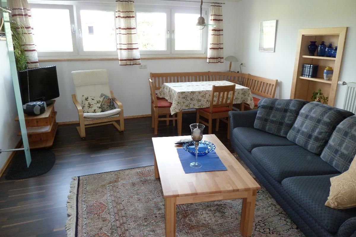 Die gepflegte 79 m2 große Ferienwohnung besteht aus einer gemütlichen Wohnküche mit Flach-Bild-TV u. Stereoanlage. Die komplett ausgestattete Küche bietet Backofen, Herdplatten, Spülmaschine, Mikrowelle, Kühlschrank mit Gefrierfach, Kaffeemaschine, Wasserkocher usw. Es gibt 2 separate Schlafräume: Schlafraum 1 mit Doppelbett und Schlafraum 2 mit Doppelbett und Einzelbett. Im großzügigen Bad finden Sie eine Badewanne und Dusche vor. Vom möblierten Balkon aus, bietet sich eine wunderschöne Aussicht auf die nahen Berge an.