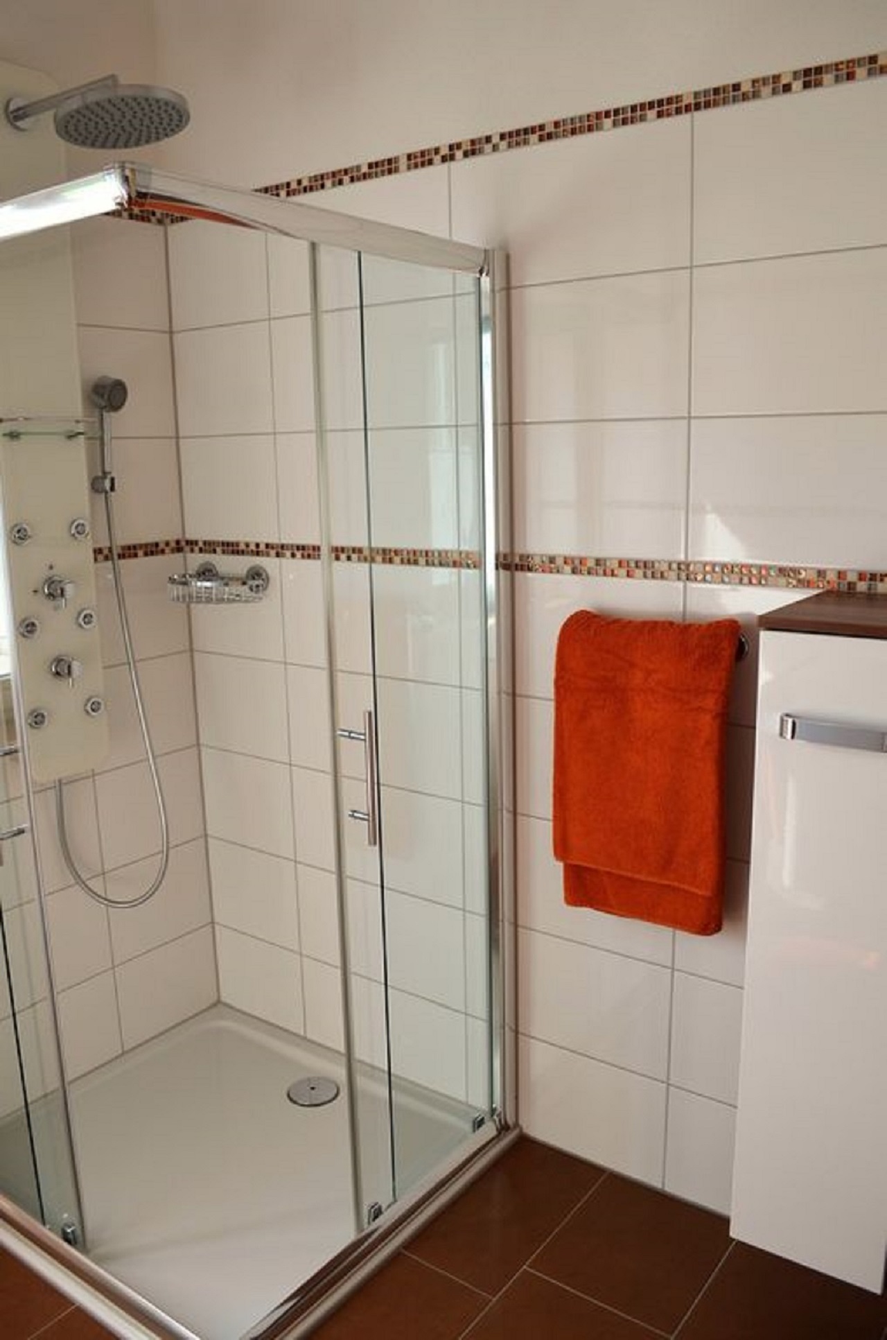 Ferienwohnung 4-7 Personen: Ferienwohnung mit speratem Eingang im Erdgeschoss, ca. 120 qm, 3 Schlafzimmer, 2 Bäder (Whirlwanne, Massagedusche), Einbauküche, großes Wohn- Esszimmer, 2 große überdachte Terassen, 2 Sat-TV, Garage