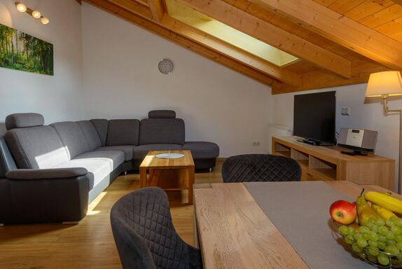 Ferienwohnung Heustadel mit 120 qm und Balkon mit Dorfblick
