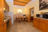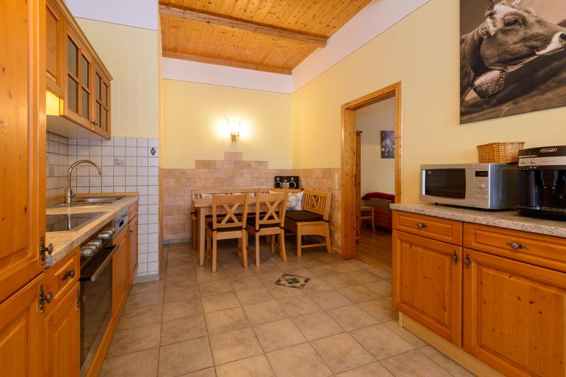 Die große Wohnküche ist mit Backofen, Spülmaschine, Mikrowelle, Gefrierschrank, Kaffeevollautomat, Wasserkocher, Toaster usw. ausgestattet. So können Sie sich auch im Urlaub ohne Einschränkungen selber versorgen. Auch eine Babyausstattung, wie Hochstuhl und Flaschenwärmer, können wir Ihnen zur Verfügung stellen. Die gemütliche Wohnecke lädt zum Entspannen ein.