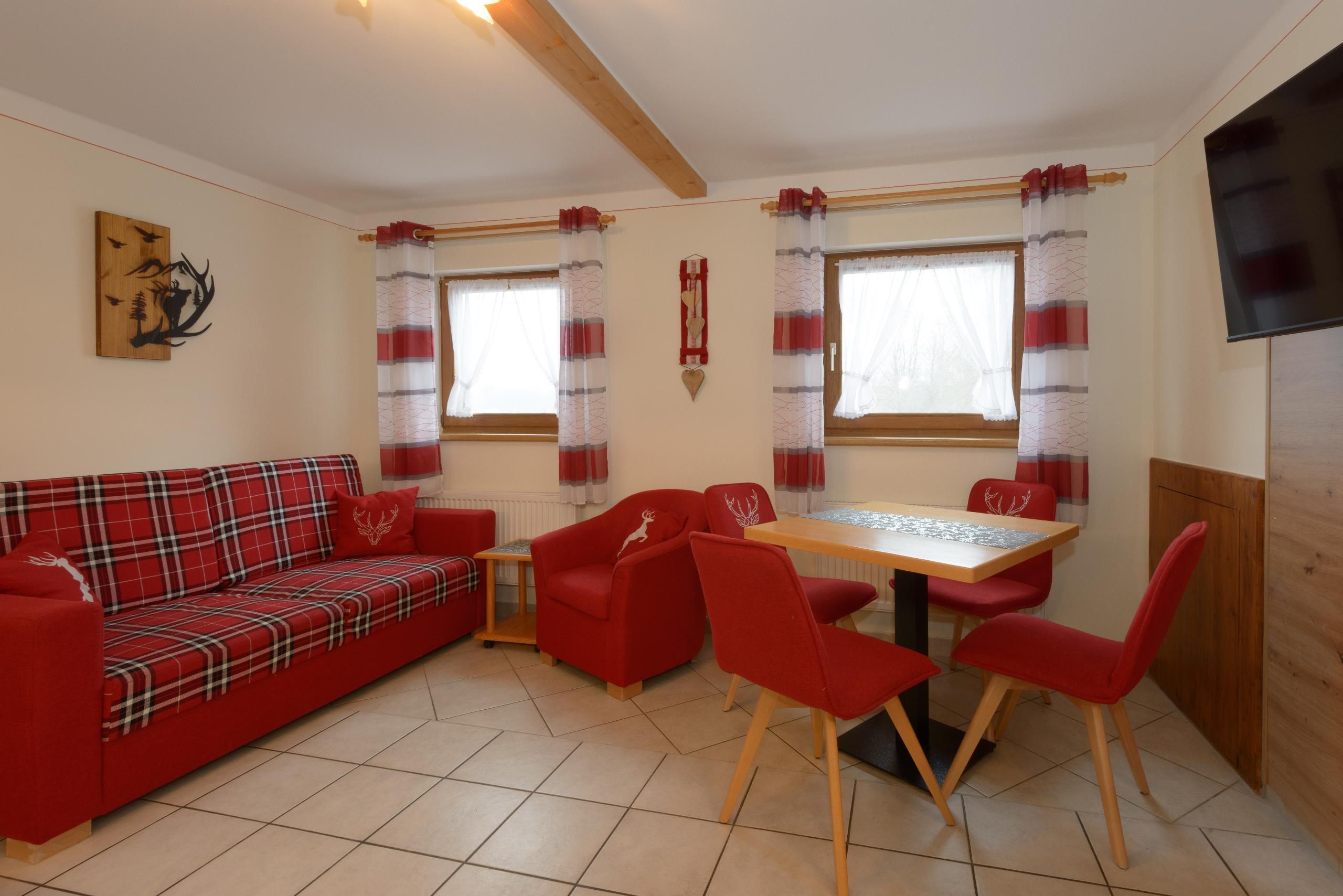 Unsere 4-Sterne-Ferienwohnungen Linde besitzen eine Wohnfläche von 55 qm. Die Einrichtung ist im typisch bayerischen Landhausstil und lädt zum Wohlfühlen ein.