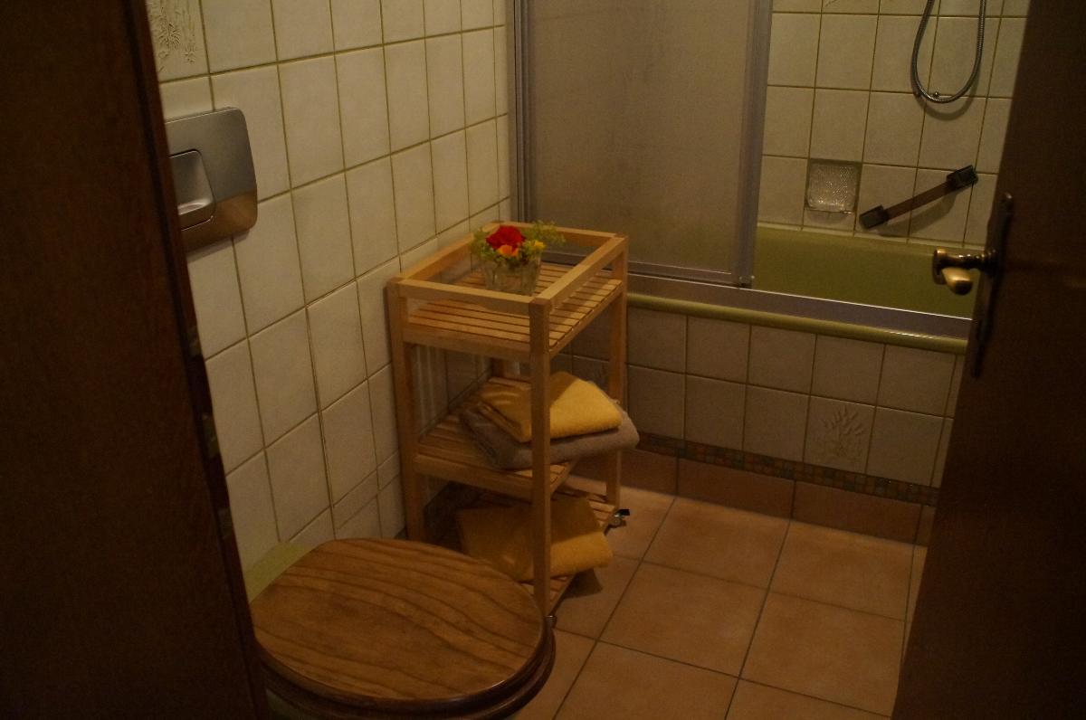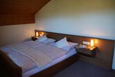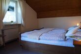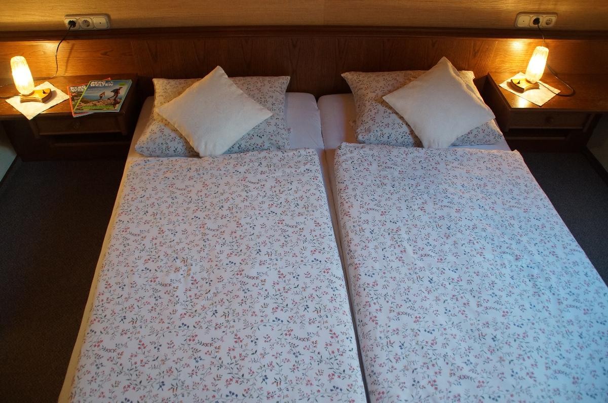Schlafzimmer mit jeweils einem Doppelbett. Das Bad mit Wanne und Duschvorrichtung sowie WC rundet das Gesamtbild ab.