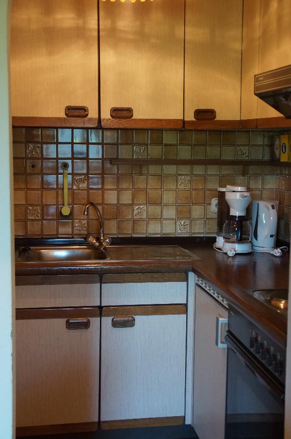 Kochnische ist ausgestattet mit Kühlschrank mit Gefrierfach (drei Sterne), Kaffeemaschine, Toaster, Wasserkocher, Geschirrspüler, Backofen und