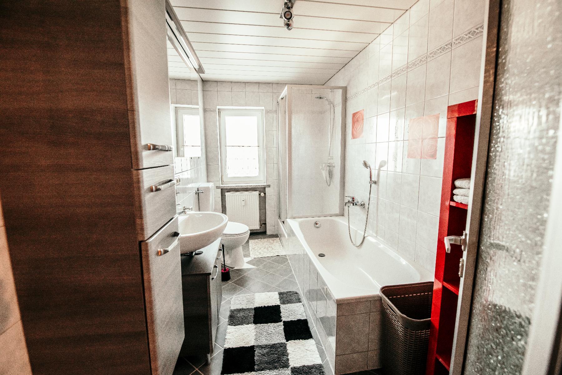 Badezimmer, davon eins mit Dusche und Badewanne. Gerne können Sie Ihr