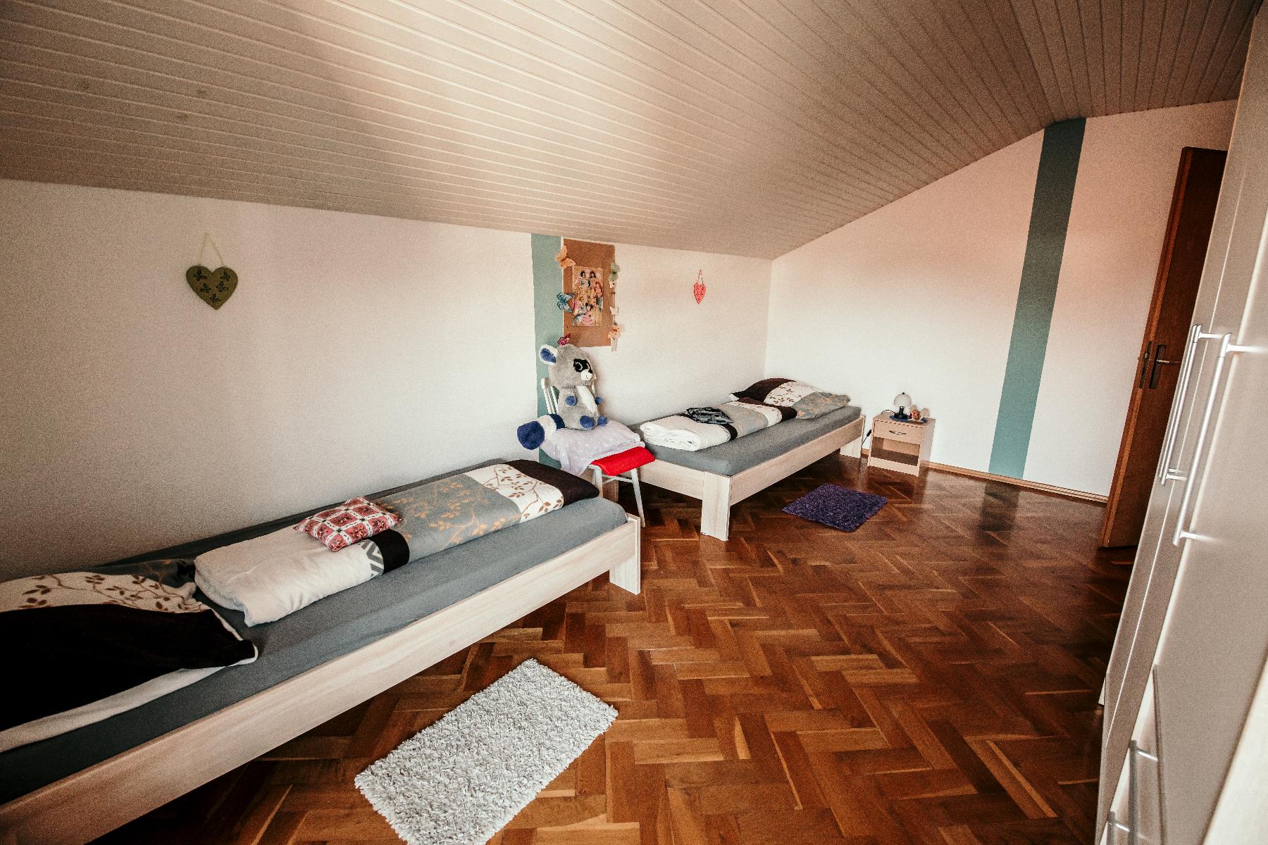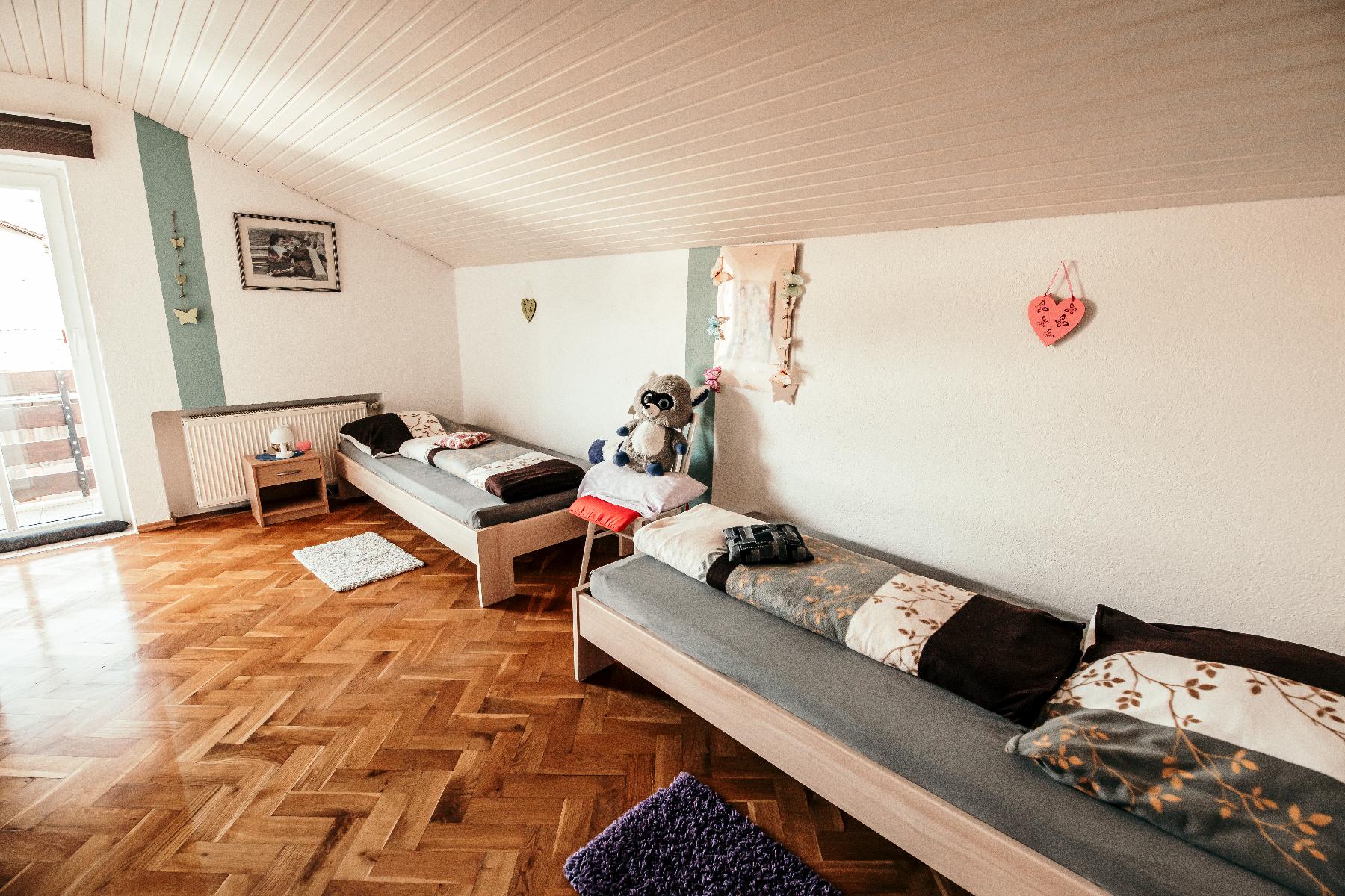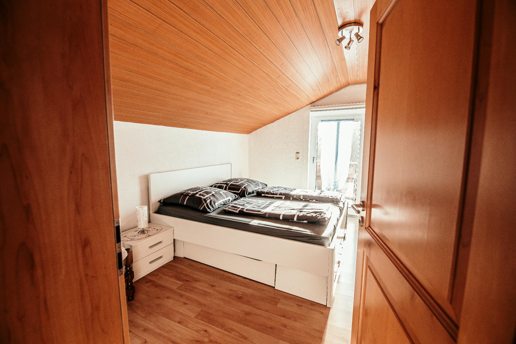 Unsere Ferienwohnung befindet sich in schöner Ortsrandlage von Viechtach, im Ortsteil Schlatzendorf im 1.OG, Haus Nr. 38.  Die Wohnung hat ca. 120qm Wohnfläche, ausgestattet mit 3 Schlafzimmern für max. 6 Personen.