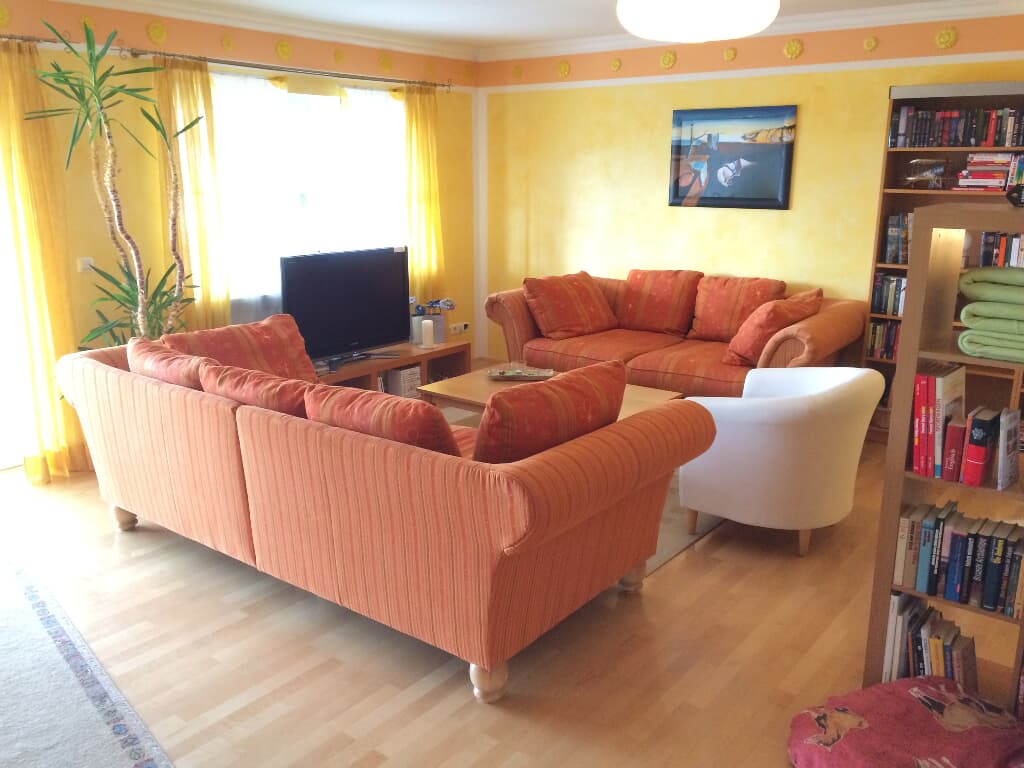 Anreise von 15 - 17 Uhr, Abreise bis 10:30 Uhr, Haustiere erlaubt (4 €/Nacht) Nichtraucherwohnung (Rauchen im Wintergarten erlaubt) Stornierungen bis 14 Tage vor Anreise sind kostenfrei, Stornierungen zwischen 14-7 Tagen vor der Anreise werden mit 50% der Gesamtkosten berechnet, Stornierungen in den 7 Tagen vor der Anreise werden mit 100% der Gesamtkosten berechnet.
