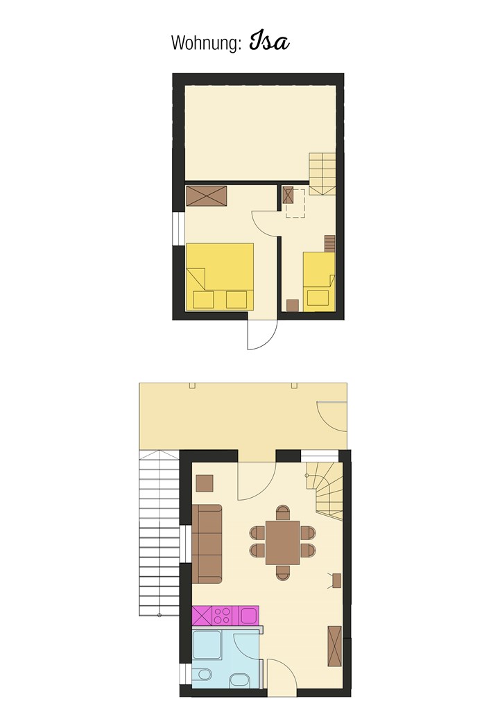 ein Etagenbett. Das Bad / WC hat eine Dusche. Diese Wohnung kann auf Wunsch
