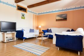 ein Farbfernseher mit SAT-Anschluss. Das Bad/WC hat eine Badewanne. Das zweite