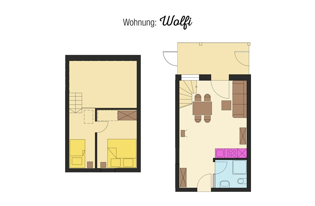 Etagenbett. Das Bad / WC ist mit einer Dusche ausgestattet. Diese