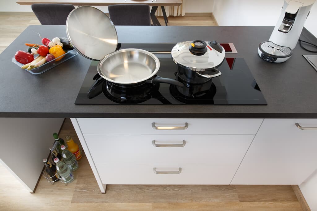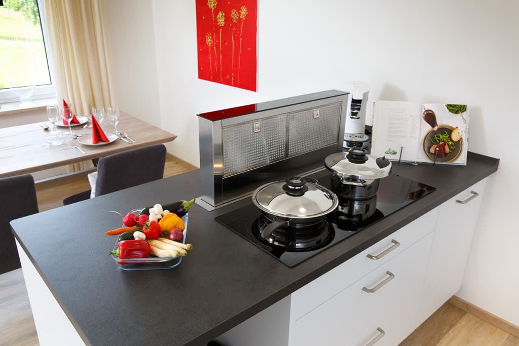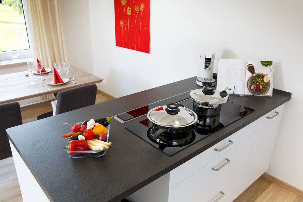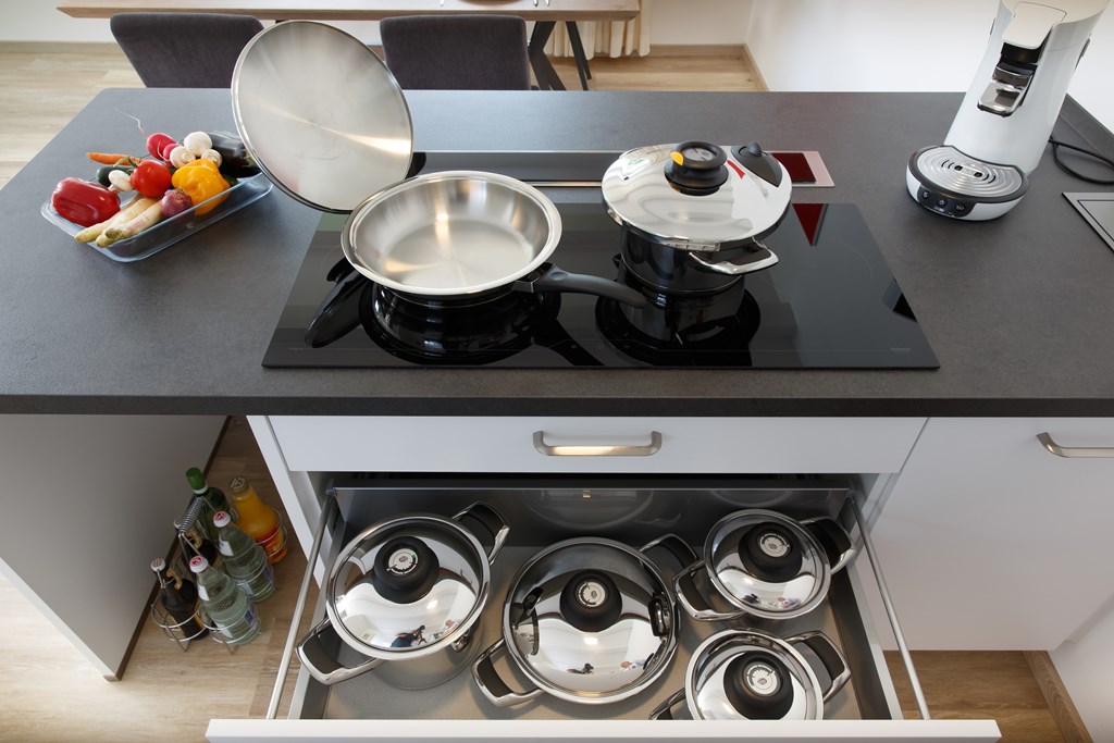 • Hochwertige AMC - Töpfe in der perfekt ausgestatteten Profiküche laden Sie zum Kochen ein.