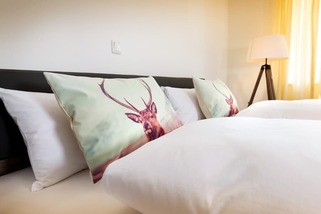 • Schlafraum (für Allergiker geeignet, behindertengerecht nach DIN): Bettwäsche und Handtücher, Doppelbett (Fußende offen), getrennte Matratzen