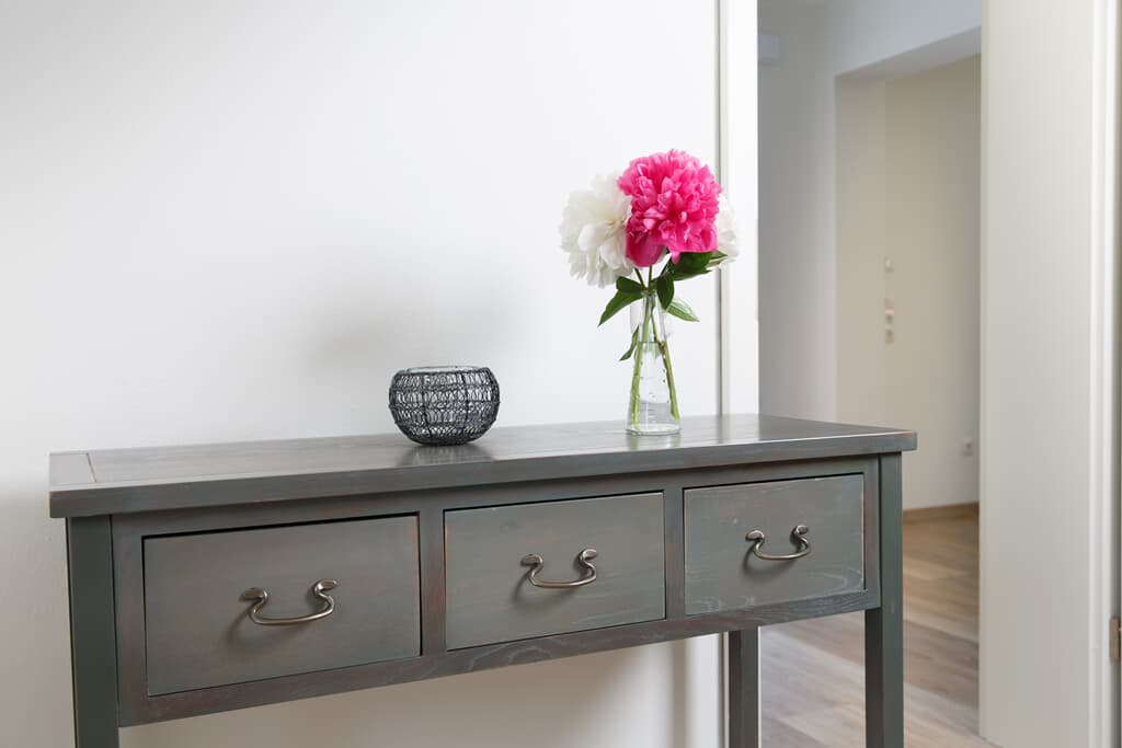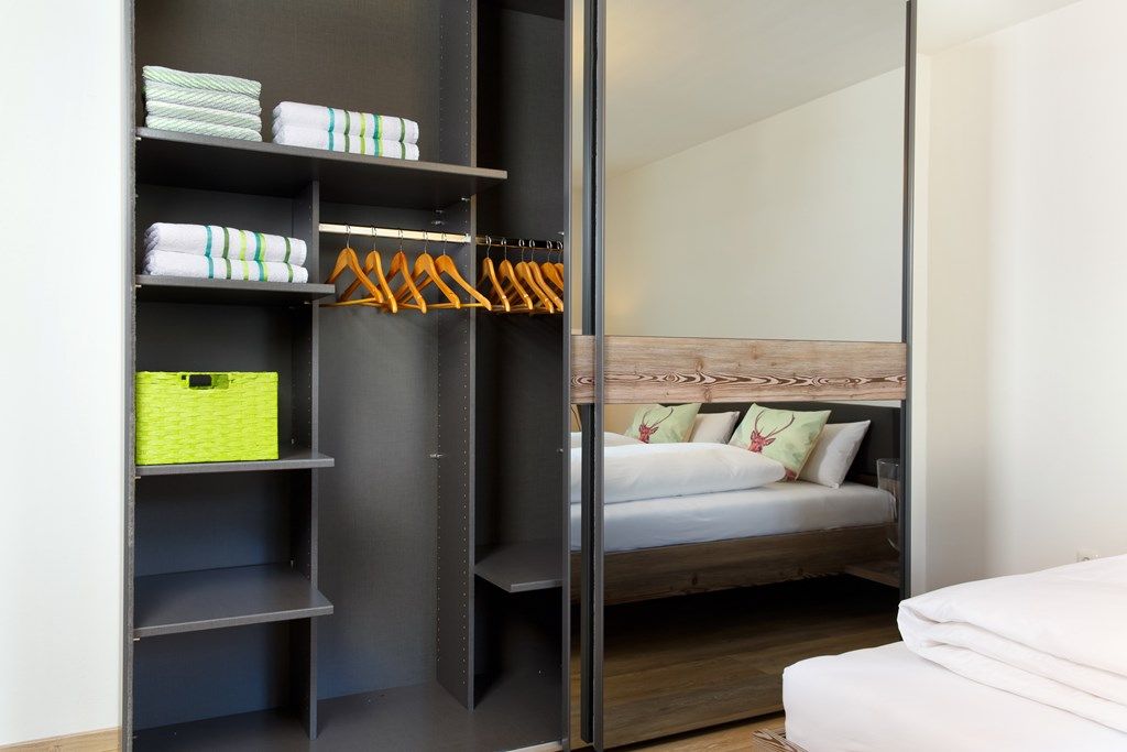 • Eine großzügig gehaltene Garderobe schafft Platz für Ihre Kleidung, Koffer und Schuhe.
