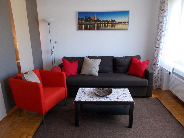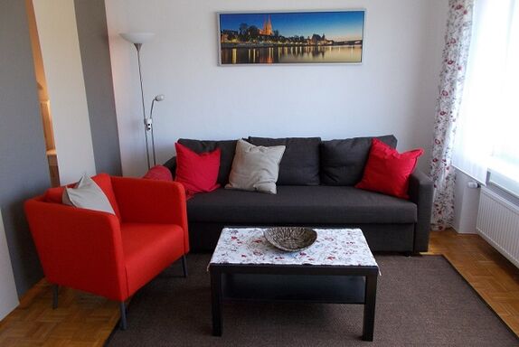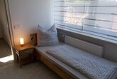 Die liebevoll eingerichteten Ferienwohnungen liegen im Erdgeschoß des Hauses. Die Wohnung besteht aus einem Wohn-Schlafraum mit Doppelbett und Schlafcouch durch Raumteiler abgetrennt. Ein weiterer Schlafraum ist mit zwei Einzelbetten ausgestattet. Die voll ausgestattete Küche verfügt über Backofen, Kaffeemaschine, Kühlschrank, Mikrowelle und Toaster. Das Badezimmer ist mit einer Dusche ausgestattet. Das große Gartenstück lädt zum Verweilen und Entspannen ein. Für Kinder ist ein Spielhaus mit Rutsche und Schaukel vorhanden.