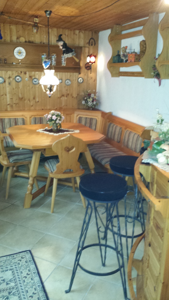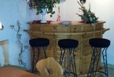 bei Regen in unserer kleinen Bar mit Theke und Eckbank.