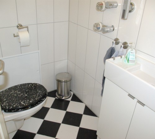 Separates WC, Bodenbelag in Apfelholzoptik.