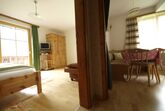 Unser, mit Zirbenholz ausgestattetes, Appartement bietet Ihnen 1 Schlafzimmer mit Doppelbett und Couch, Wohnküche mit Kochnische und Essecke, Vorraum, Dusche/WC und Balkon