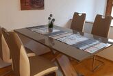 Wohnküche mit Essecke und Couch, Kaffeemaschine, Wasserkocher, Toaster, Eierkocher