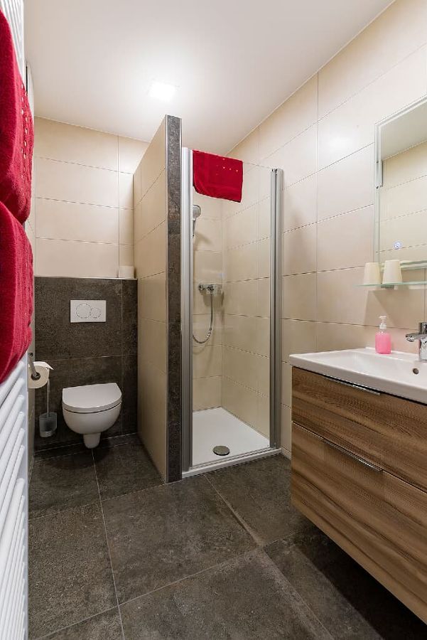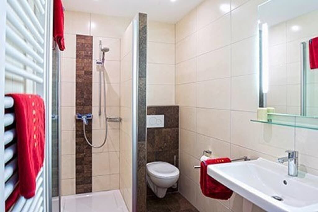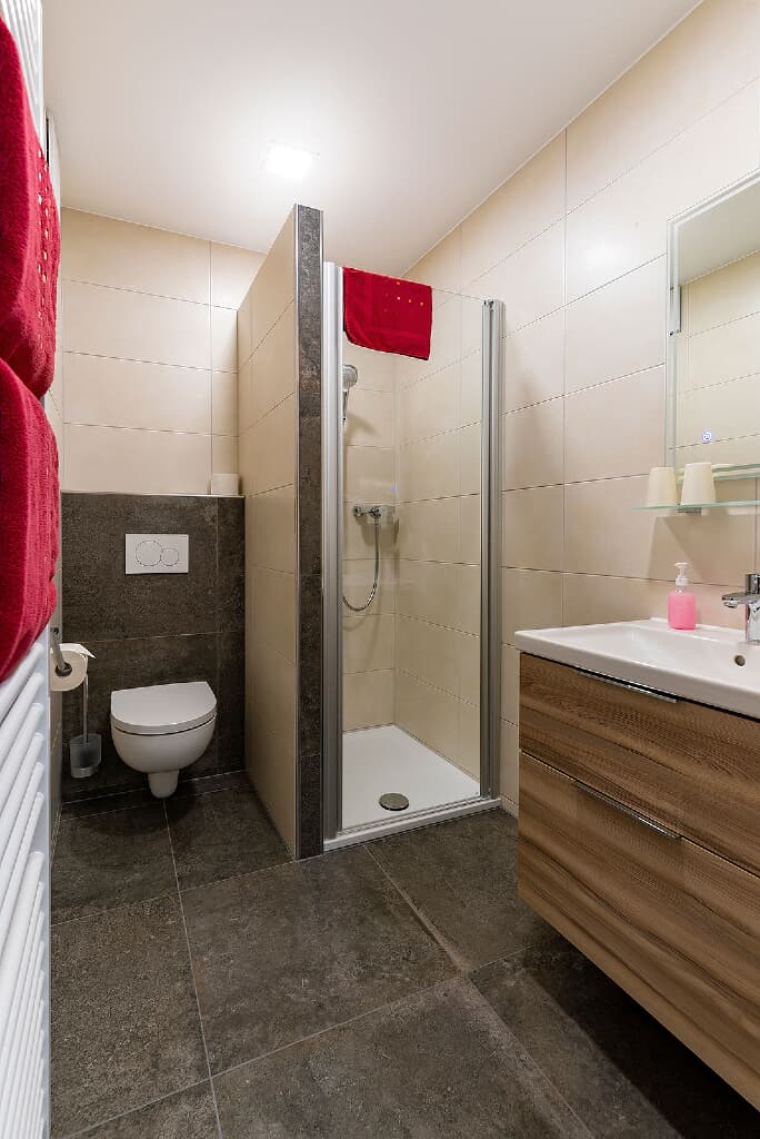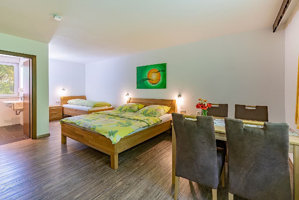 Dusche/WC, alle Zimmer mit SAT-TV, Balkon oder Terrasse, Nichtraucherzimmer, Zustellbett möglich, kostenloses WLAN, 4 Doppelzimmer mit Kochnische und Kühlschrank.