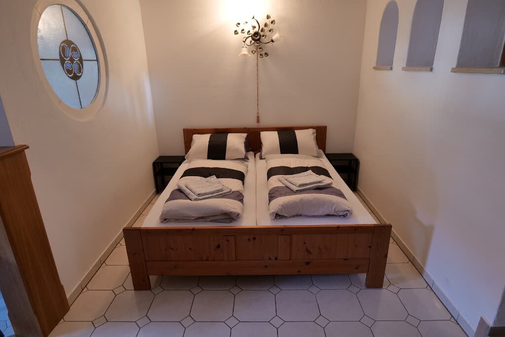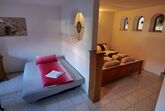 Unsere freundliche und großzügige Wohnung Obelix (ca.60 m2) über zwei Etagen bietet Platz für 1-3 Personen. Das gemütliche Wohnzimmer mit Polstermöbeln, Glastisch und Flachbild-TV lädt zum Verweilen ein. Die Küche ist mit Herd, Backofen, Wasserkocher, Toaster, Kühlschrank und Kaffeemaschin zweckmäßg ausgestattet. Die urige Sitzecke mit Esstisch bietet schönes Ambiente für Gespräche und gemeinsame Mahlzeiten. Das Bad ist mit Dusche, Badewanne und WC ausgestattet. In unserem großzügigen Garten können Sie die Natur beobachten und dabei wunderbar entspannen. Nach Absprache können Sie auch gerne ihren Hund in die geflieste Wohnung mitnehmen. Ein überdachter Parkplatz vor dem Haus steht Ihnen kostenfrei zur Verfügung.