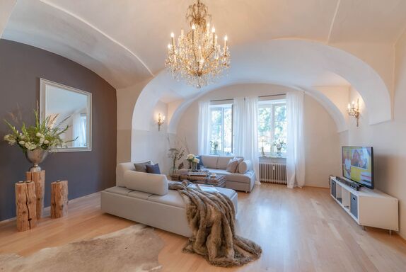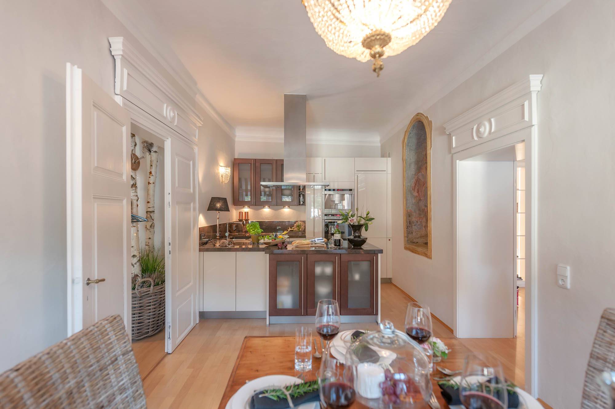 Die Wohnung liegt zentral in der 1. Etage eines 1370 erbauten Hauses. Bei der Gestaltung wurde viel Wert auf die Kombination von Historie und Moderne gelegt. Alle Räume wurden liebevoll und hochwertig ausgestattet.