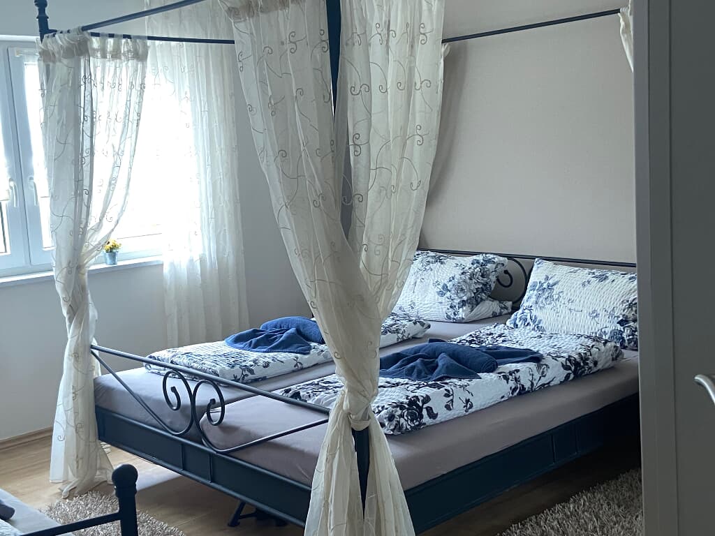 Anreise 16 Uhr - 20 Uhr, Abreise um 10 Uhr. Bis zu 2 Haustiere erlaubt á 5,00 € pro Tag/Tier. Nichtraucherwohnung Babybett auf Anfrage Whirlpool auf der Terasse kann gegen einen Aufpreis von 30,00 € pro Nacht aber mindestens 90,00 € dazugebucht werden