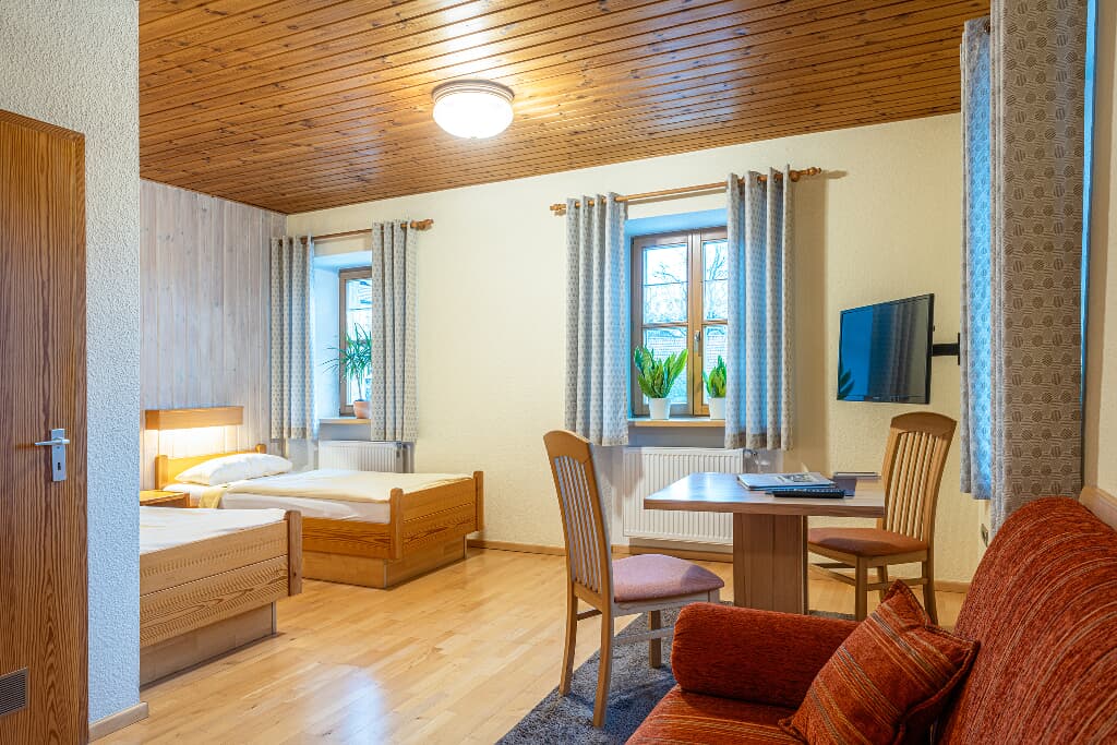 Unsere gemütlich eingerichteten Zweibettzimmer verfügen über DU/WC, Flat-TV, WLAN, Sitzecke.