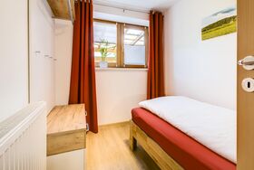 Sie besteht aus 2 Schlafzimmern (1 Doppelzimmer & 1 Einzelzimmer), gemütlicher Wohnküche mit Backofen und Cerankochfeld, Mikrowelle, Toaster, Wasserkocher und Kühlschrank mit Gefrierfach. Bad mit Dusche und WC.