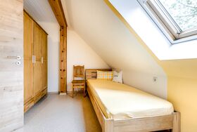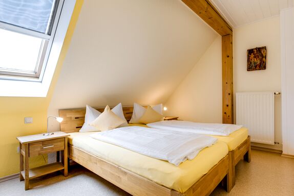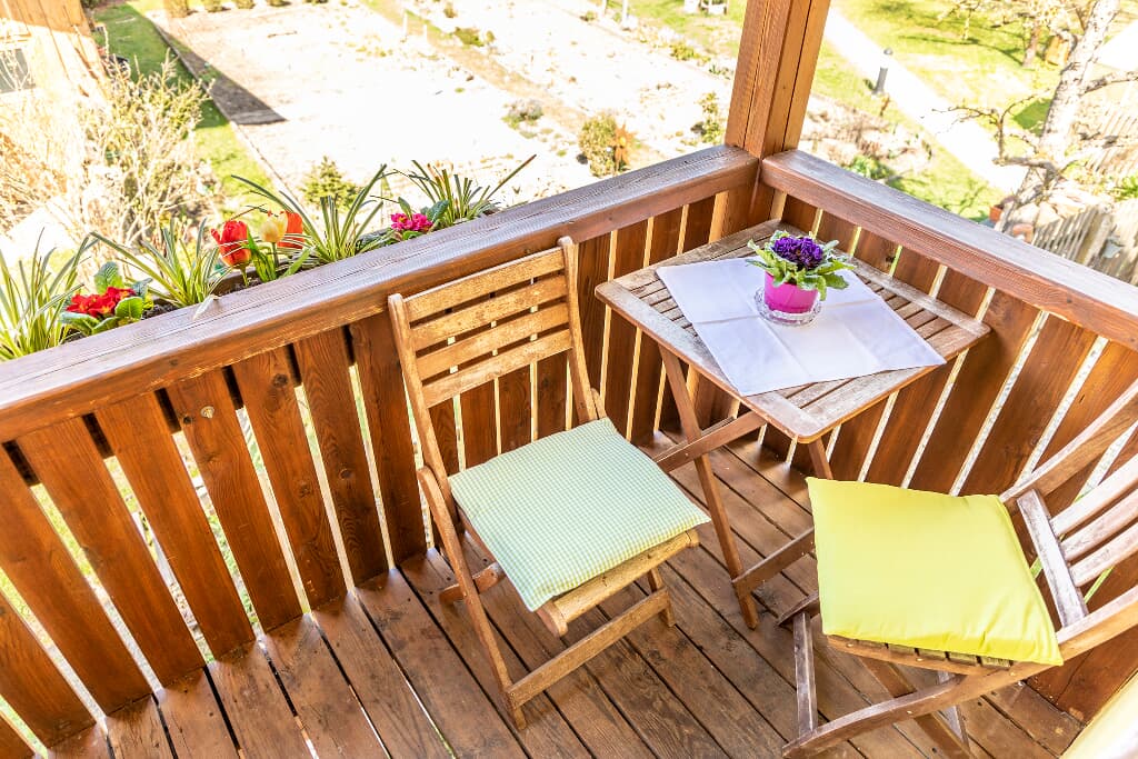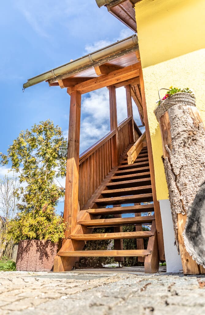 Die Ferienwohnung Abendrot ist eine 75qm große Ferienwohnung und mit 4 Sternen ausgezeichnet. Sie ist in der ersten Etage mit eigenem Eingang. Beim Aufgang ist eine Liegewiese mit Freisitz. Außerdem ist direkt an der Eingangstür ein kleiner Balkon vor der Wohnung.