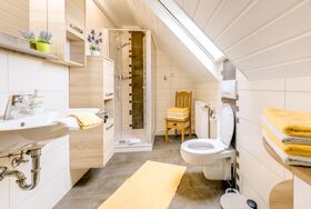 Sie besteht aus 2 Schlafzimmern jeweils mit 2 trennbaren Betten. Die Wohnküche beinhaltet einen Kühlschrank, eine Spülmaschine, eine Mikrowelle, eine Kaffeemaschine, ein Wasserkocher, einen Toaster und Schlafcouch. Das Bad ist mit einer Dusche und WC ausgestattet.
