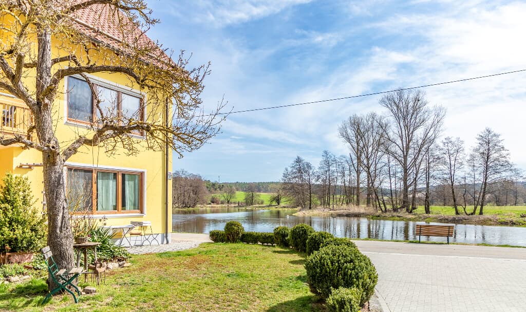 Herzlich willkommen auf unserem kinderfreundlichen Bauernhof – direkt an der Naab gelegen – mit vielen Tieren (Schweine, Hund, Katzen, Esel, Pony, Enten usw.). Bei uns finden Angler, Familien und Naturfreunde in unseren komfortablen Ferienwohnungen, Holzhaus, Appartements und Doppel- bzw. Einzelzimmern Erholung pur! Aufenthaltsraum, Gästeküche in jeder Etage, hauseigenes Boot und Tretboot, eigenes Fischwasser, usw. stehen Ihnen zur Verfügung. Am Morgen erwartet Sie in unserem Frühstücksraum ein reichhaltiges Buffet mit Milch, Müsli, Joghurt, kühlen Säften u.v.m.