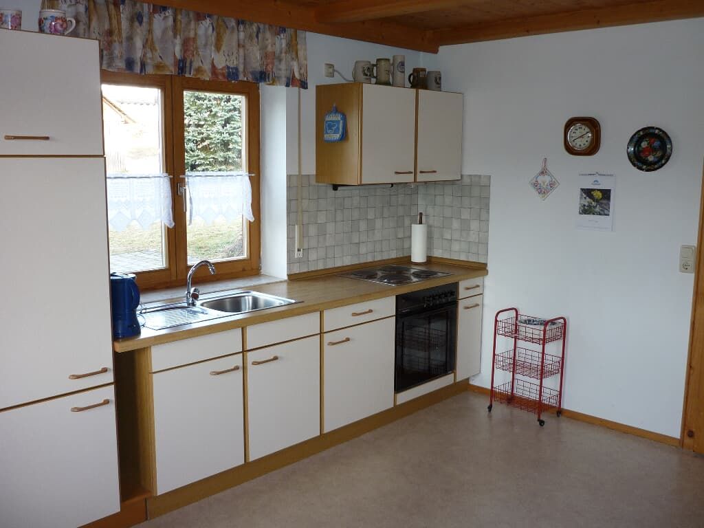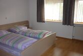 Ferienwohnung (70qm) für 2 bis 6 Personen: Ferienwohnung mit drei Schlafzimmer (jeweils Doppelbett - davon ein Schlafzimmer mit Dusche/WC), Wohnküche mit Sitzecke, Couch, Sat-TV, Radio, Küchenzeile (Kühlschrank, Backofen, Kaffeemaschine, Toaster, Wasserkocher, Eierkocher und Mixer), Badezimmer mit Badewanne/Dusche/WC, Diele mit Gardarobe, Kinderbett sowie Internet-Zugang (WLAN auf Anfrage). Überdachte Terrasse mit Gartenmöbel und -liegen, Liegewiese, Grillplatz, Gartenlaube und Spielgeräte.