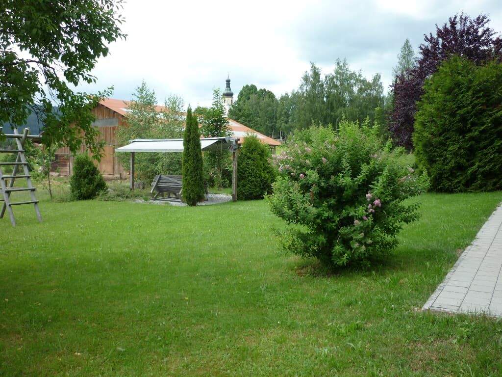 Die ebenerdige Wohnung mit separatem Eingang ist frei von Erd- und Wasserstrahlen und im großen Garten finden Sie einen Grillplatz, eine Gartenlaube, Gartenmöbel, eine Spiel- und Liegewiese sowie einen Spielturm und Geräte.
