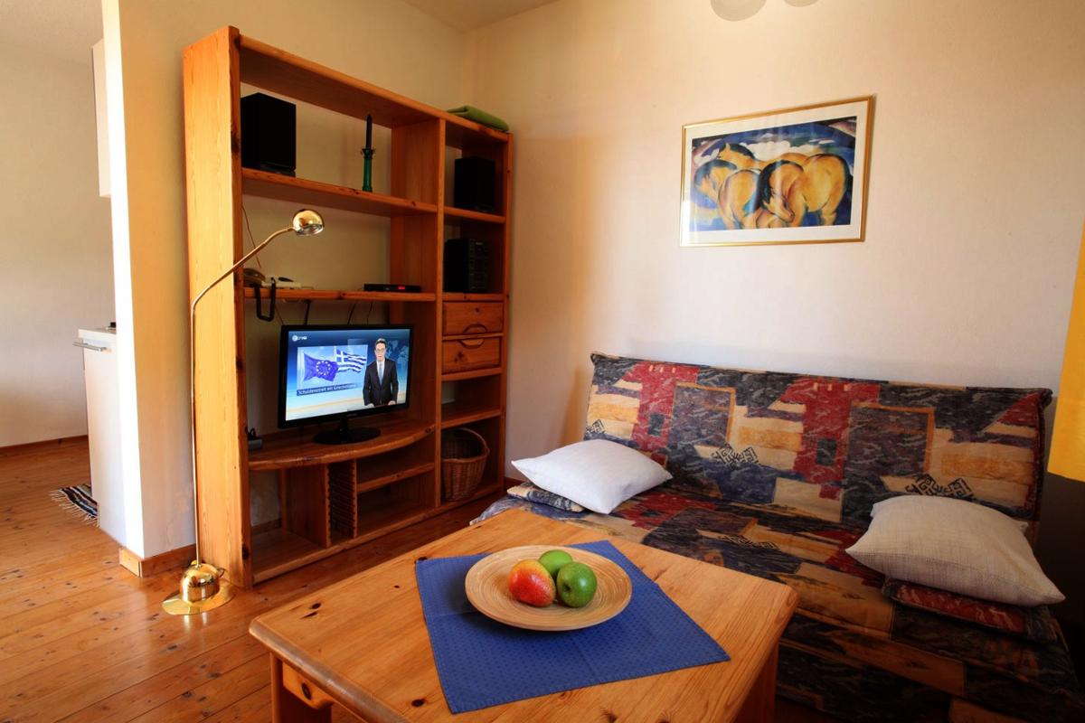 Im Apartment 3 liegen Wohn- und Schlafbereich auf zwei Ebenen, welche durch eine innenliegende Treppe verbunden sind. Das Apartment hat einen eigenen Balkon und eine eigene Terrasse. Das Apartment liegt nach Süden.