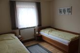 Ein Schlafraum verfügt über ein Doppelbett, der zweite über zwei Einzelbetten. Bei Buchung für fünf Personen wird im zweiten Schlafraum ein Klappbett hinzugestellt. Beide Schlafräume sind mit Rollläden ausgestattet.