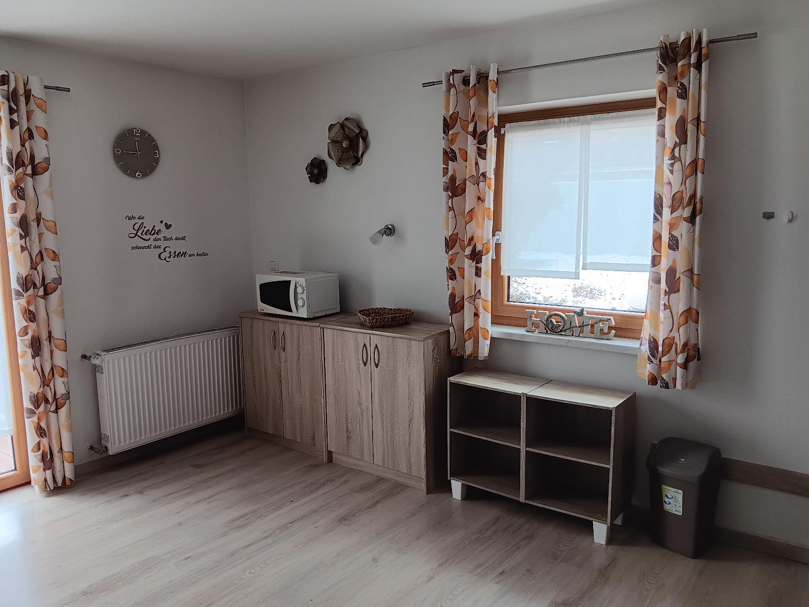 Große gemütliche Wohnküche,Wohnlandschaft mit Sat-TV-Radio-CD Spieler und DVD Spieler inklusive Kinder- DVDS, zwei Schlafzimmer ( belegbar bis 5 Personen - fünfte Person Zustellbett),Bad mit Badewanne und Dusche und Fön. Für unsere Kleinen Gäste ein Kinderbett und Hochstuhl. Indoor- Spiele ( Bücher , Spiele u.v.m.). Unser großer Garten mit Spiel - und Liegwiese , Hollywoodschaukel, Sonnenterrasse mit Gartenmöbel , aber auch eine schattige Terrasse. Für unsere Kleinen Gäste eine Schaukel,Rutsche .