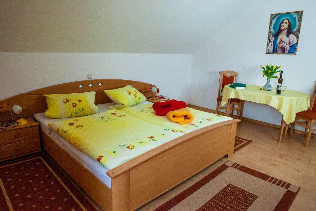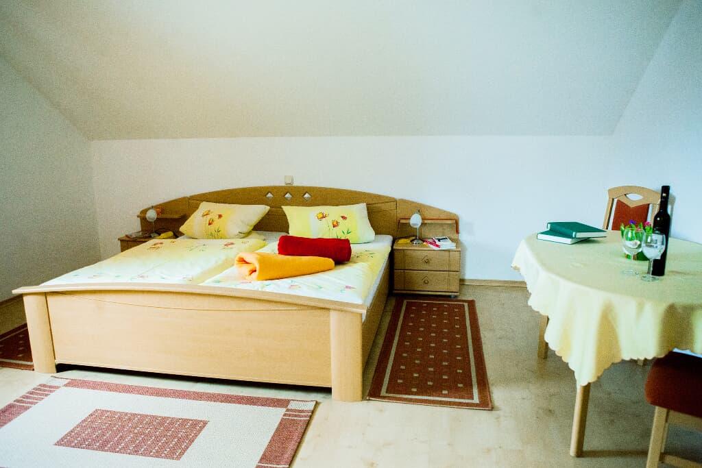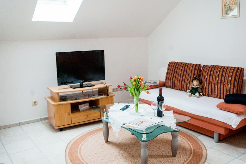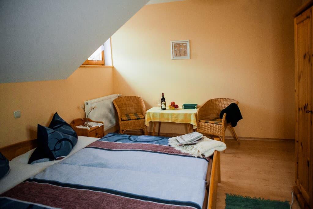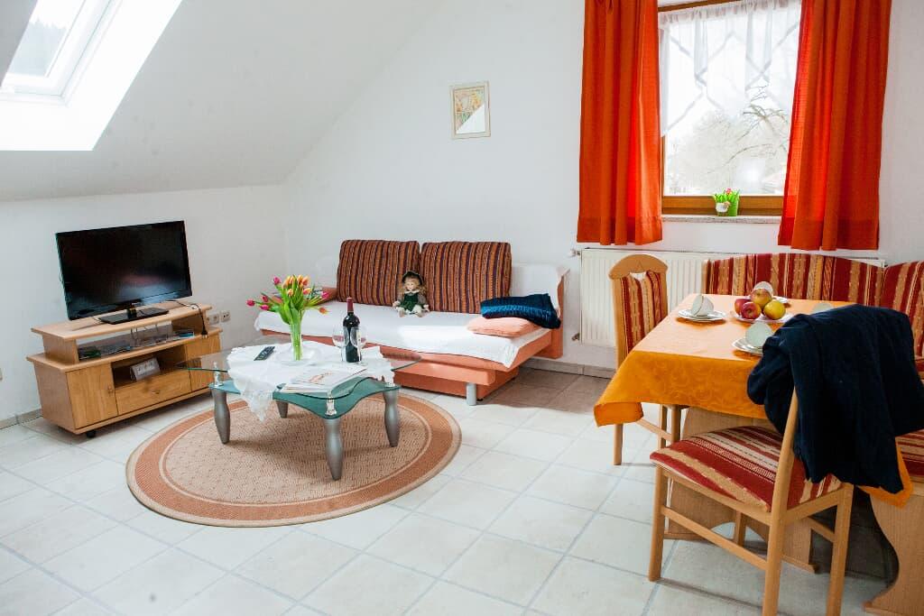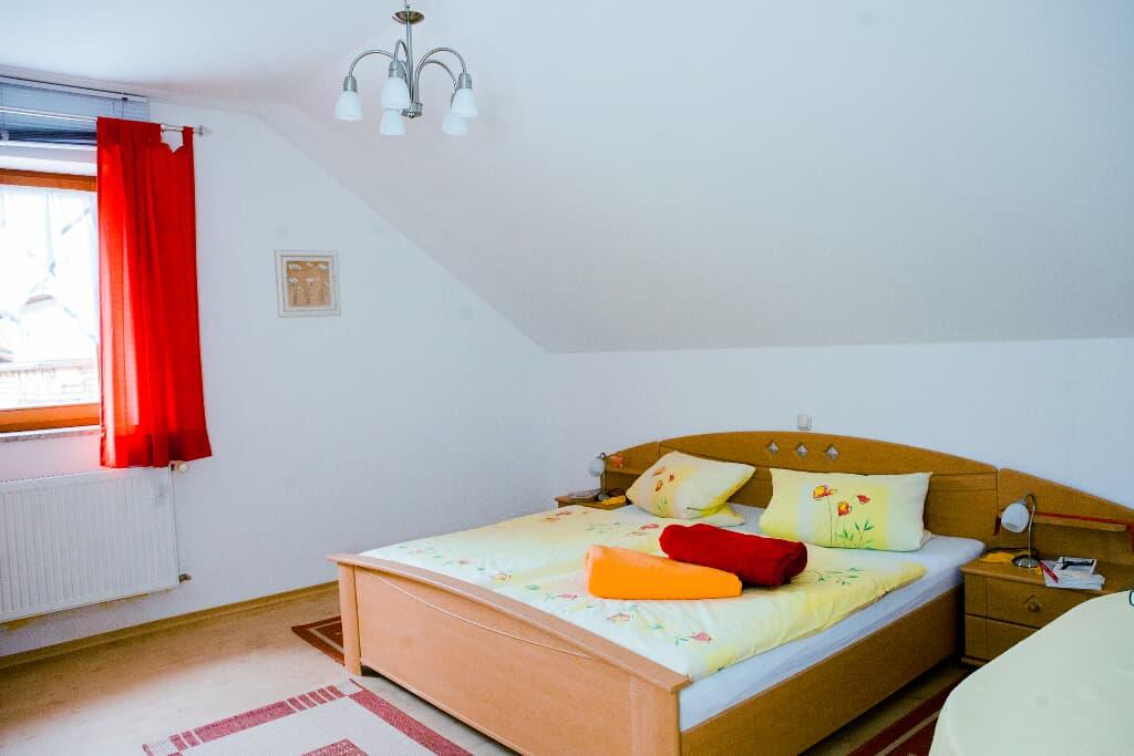 Unsere freundliche und helle Ferienwohnung Blick auf den Hohen Bogen mit 50m2 Wohnfläche Platz für 4 Personen. Die Ferienwohnung verfügt über 2 Schlafzimmer mit jeweils einem bequemen Doppelbett und Zugang zum Balkon. Das gemütliche Wohnzimmer mit Schlafsofa und Flachbild-TV lädt zum Verweilen ein. Die komplett ausgestattete Küche mit Kühlschrank, Herd, Toaster, Kaffeemaschine und Backofen lässt keine Wünsche offen. Die beiden Badezimmer mit Dusche und WC runden das Gesamtbild ab. Vor allem im Sommer können Sie entspannte Abende auf dem Balkon verbringen. Das WLAN und den Parkplatz vor dem Haus können Sie kostenfrei nutzen.